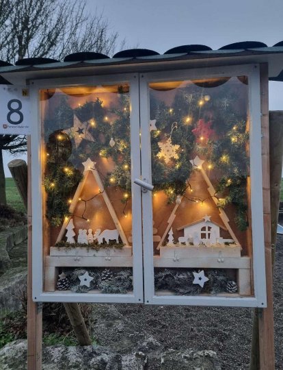 24 Fenster wurden vom 01.12. bis 24.12.2024 in Einsingen weihnachtlich dekoriert und besonders gekennzeichnet, d.h. mit Nummern für die jeweiligen Adventstage und Buchstaben für das „Fensterl-Rätsel“ versehen.