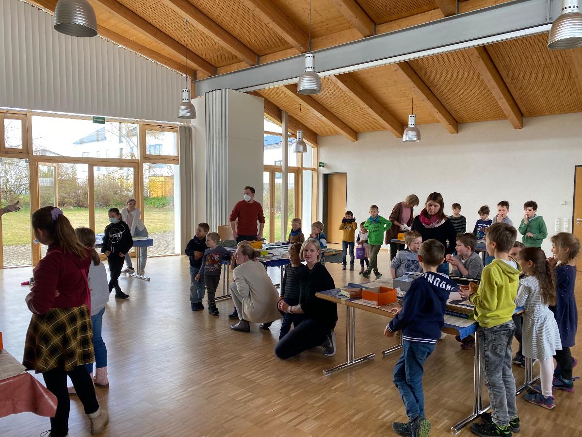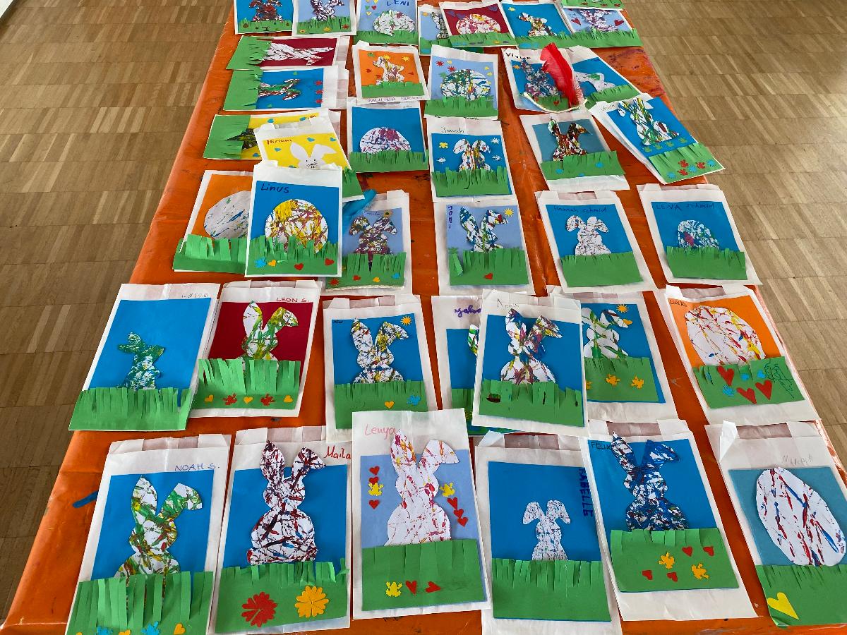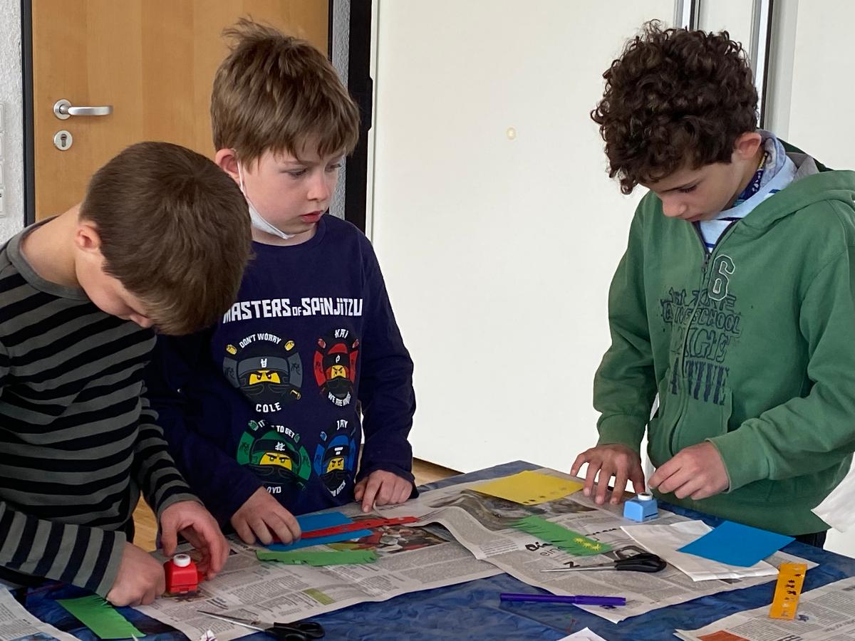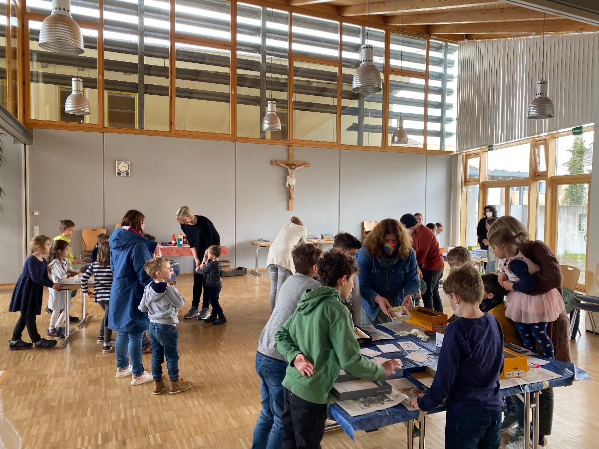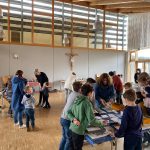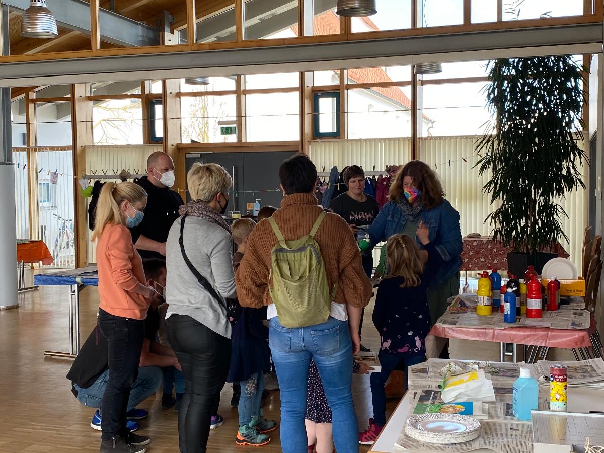 Überaus eifrige Kinder im Alter von 2 bis 12 Jahren waren beim Ostertütenbasteln am Samstag im Gemeindezentrum aktiv – teilweise unterstützt durch Mamas und Papas. Aufgeteilt in verschiedenen Gruppen wurden Murmelbilder erstellt, Ostereier und Osterhasen ausgeschnitten, bunte Motive gestanzt und wunderschöne und variantenreiche Ostertüten gebastelt. Über Nacht war der Osterhase aktiv und hat die Ostertüten mit süßen Leckereien befüllt.