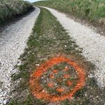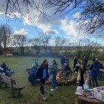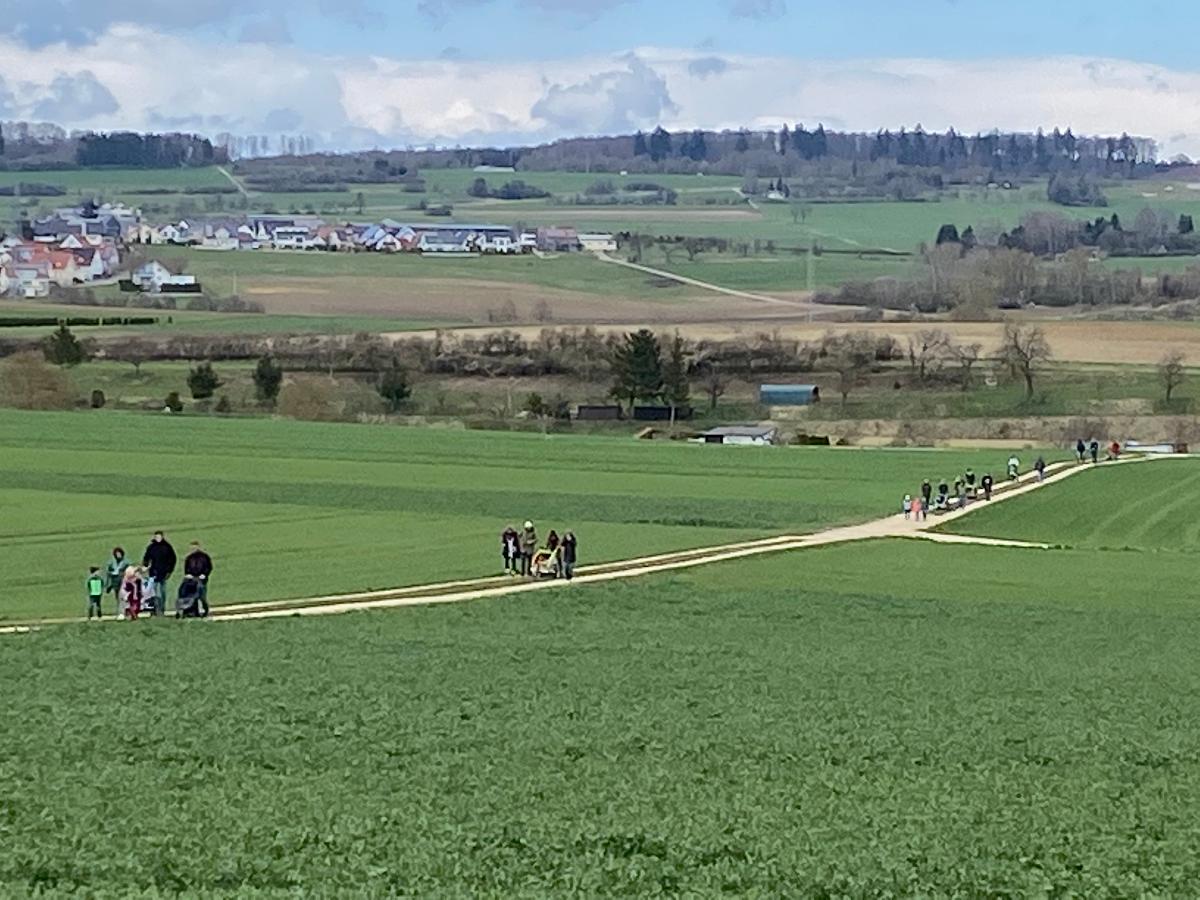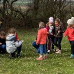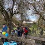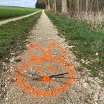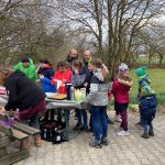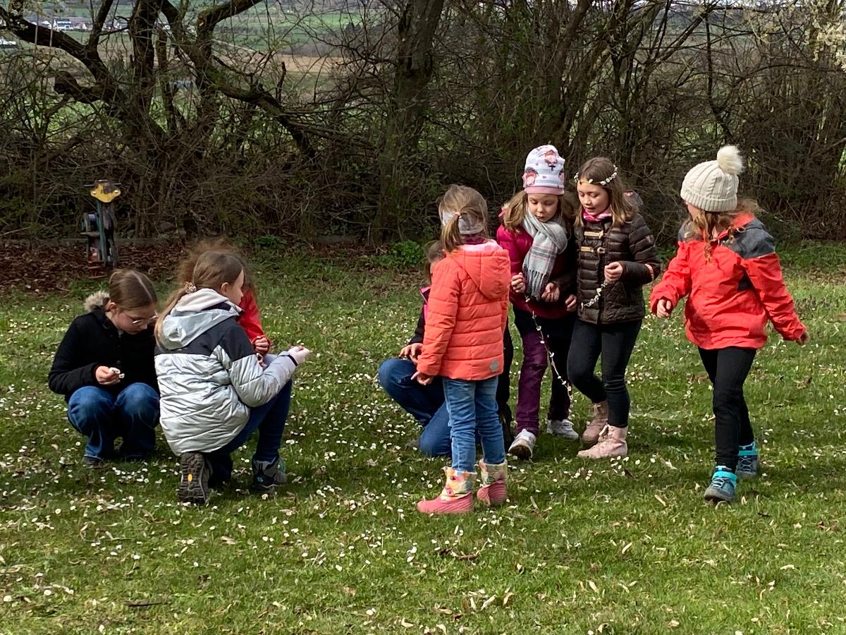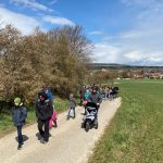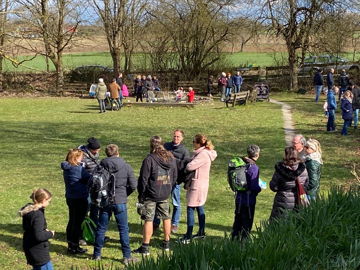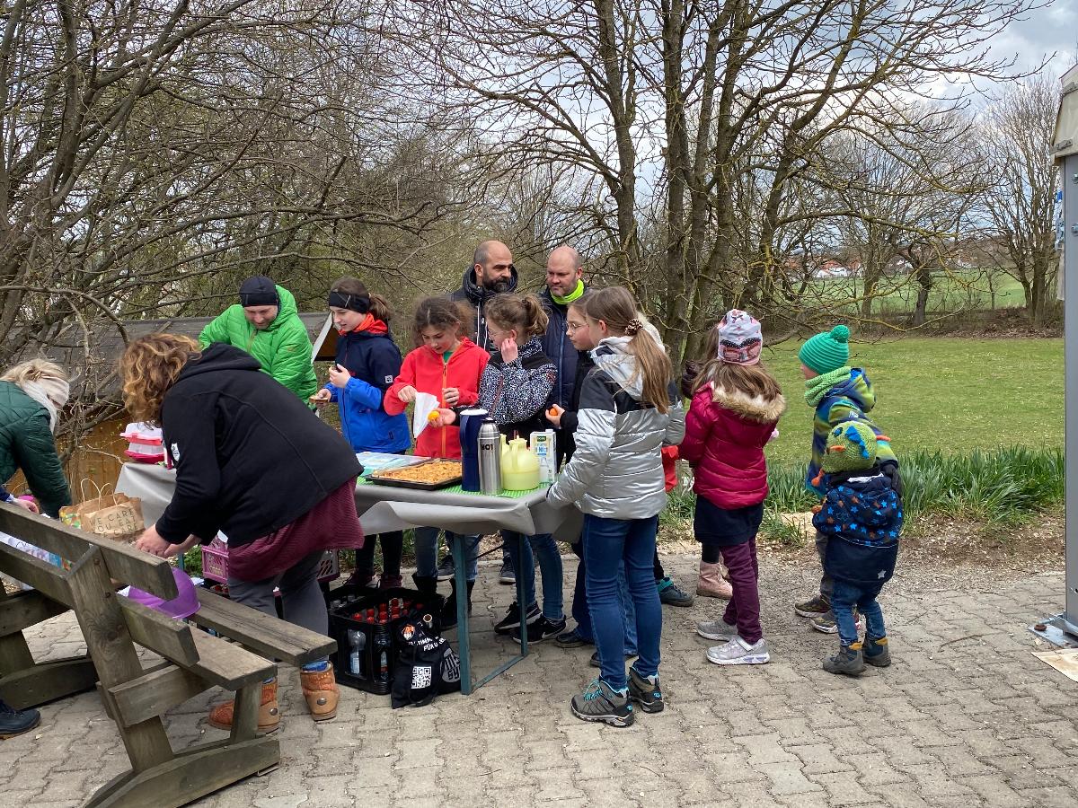 Am Sonntag um 14 Uhr startete die Oster-Schnitzeljagd. Ca. 30 Familien machten sich dabei auf die Suche nach den Osterhasen-Spuren – das waren mit Sprühkreide (die nach einigen Wochen wieder verschwindet) angebrachte Ostereier und Osterhasen als Wegmarkierung.
