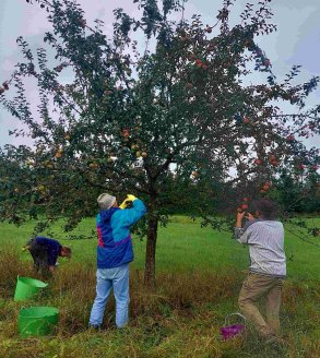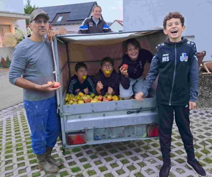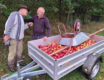 Am Donnerstag den 25.09.2025 fanden sich in einer Regenpause fleißige Helfer ein, um Äpfel zur Herstellung unseres hochwertigen Albverein-Apfelsafts zu sammeln. Nach ca. 2 Stunden, inzwischen schien sogar die Sonne, waren ca. 400 kg auf dem PKW-Hänger geladen. Am Freitagvormittag waren nach knapp 2 Stunden um die 250 kg aufgeladen. Mit großer Aufmerksamkeit wurden alle fauligen Früchte aussortiert. Am späten Nachmittag führte dann die Albvereinsjugend (4 Jugendliche, 3 Erwachsen) ebenfalls eine Apfelernte durch mit einem Ertrag von ca. 350 kg. Insgesamt haben wir somit eine Gesamtmenge von ca. 1.000 kg ungespritzte Äpfel, aus welcher bei der Mosterei Buchele in Dellmensingen 625 l Saft gepresst wurden. Der erhitzte Apfelsaft wurde direkt in Bag in Box- Getränkebeutel (5 & 10 Liter) abgefüllt. Ein herzliches Dankeschön gilt allen Helfer, ob jung oder alt!