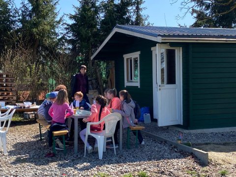 Am Samstag, den 5. April strahlte nicht nur die Sonne, sondern auch 20 Schulkinder im Alter von 6 bis 10 Jahren, als sie ihre selbstgebastelten Kressehäuschen fertiggestellt hatten.