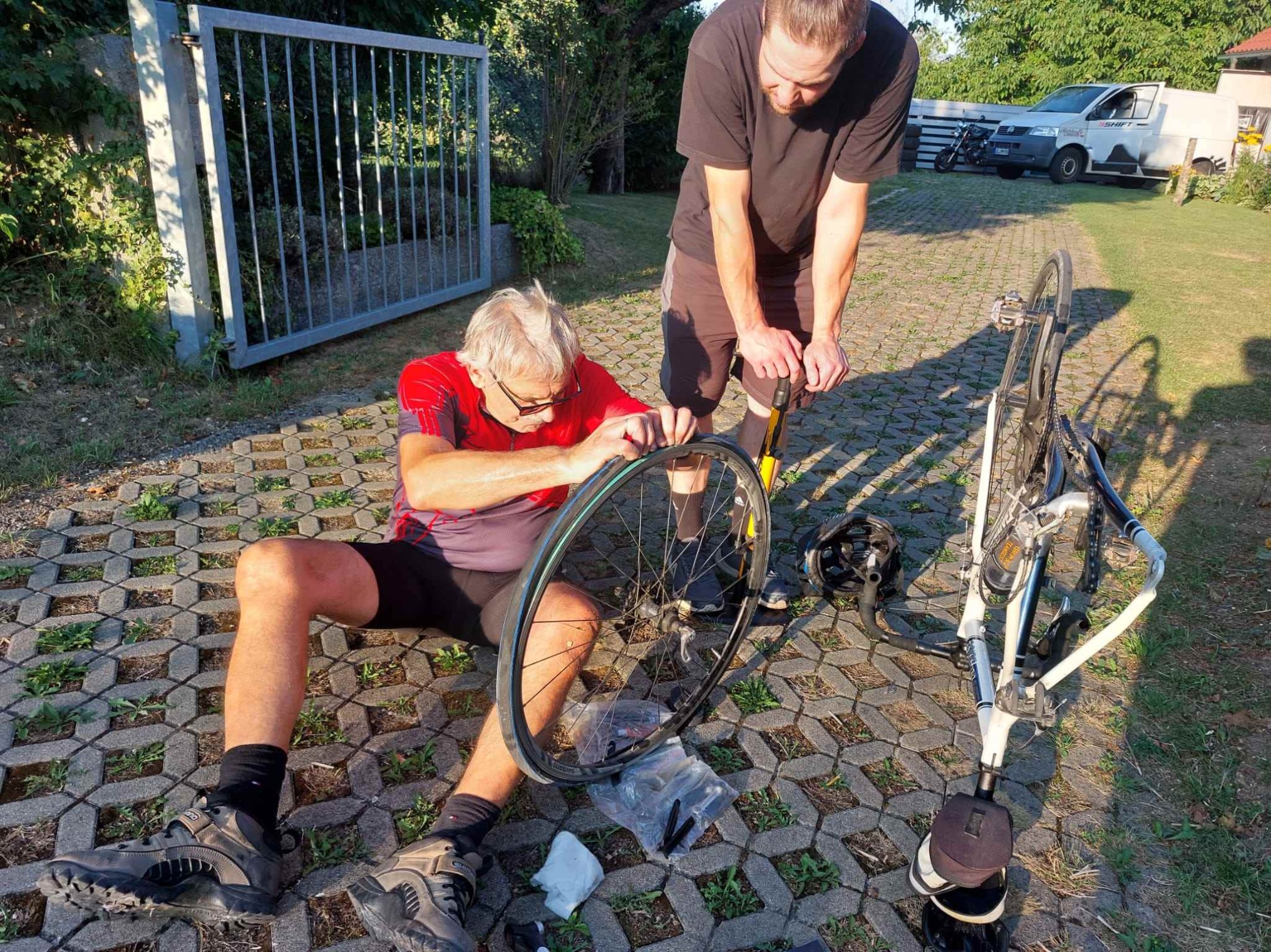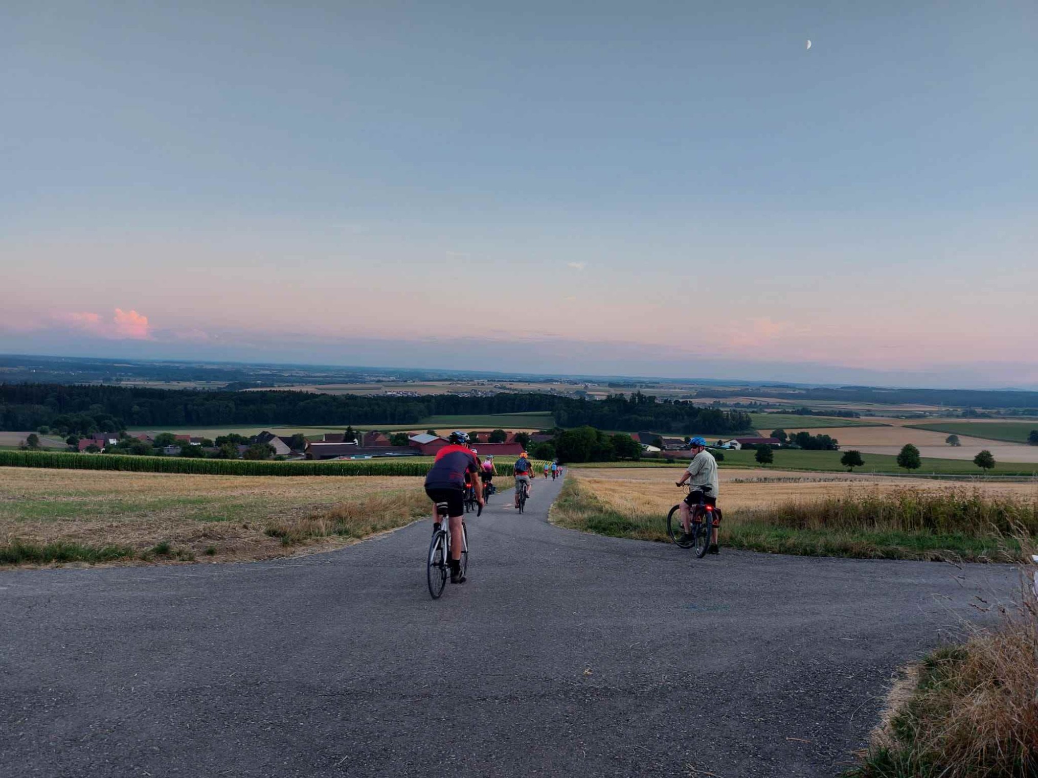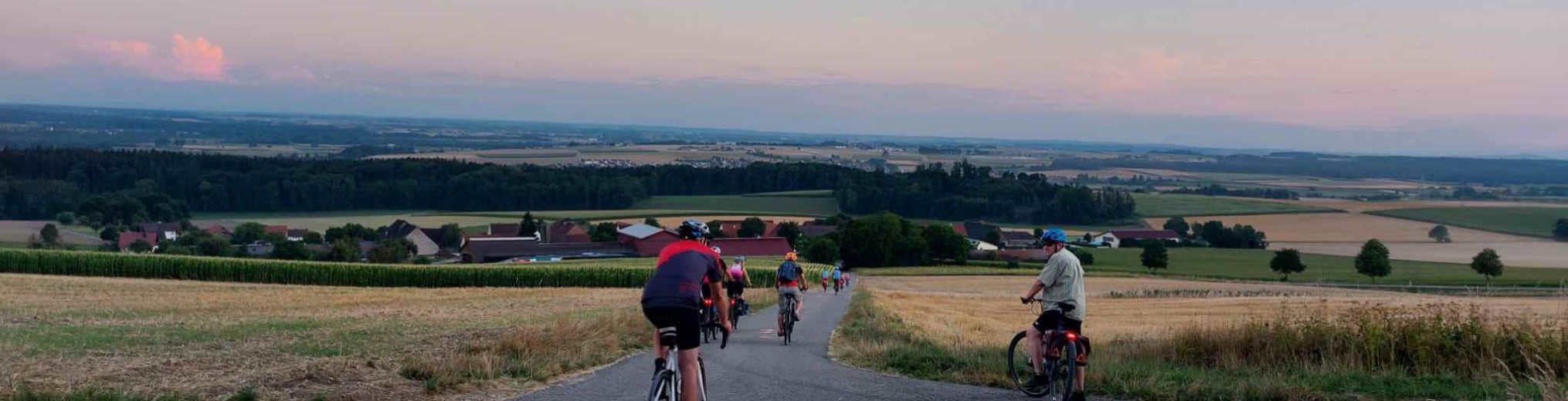 Trotz enorm hoher Temperatur fanden sich 10 entschlossenen Radler am Treffpunkt ein. Aufgrund der hohen Temperatur und dem Ziel „Gaststätte Butzental um 19:30Uhr“ wurde die Streckenführung mehrmals in demokratischer Weise „angepasst“. Am Salenhau war die 1. Trinkpause. Von Beiningen ging es ins Achtal (zwischen Schelklingen und Weiler), einige von uns auf Asphalt über Pappelau/Sotzenhausen und die Anderen auf einem mäßig abschüssigem Schotterweg durch´s Höllental. Von Arnegg ging es als letzte Herausforderung bergauf nach Ermingen. Leider ereilte einem Radler von uns ein platter Reifen am Hinterrad! Da Aufpumpen wenig erfolgreich war, musste der Schlauch in Ermingen getauscht werden. Dank der sofortigen Hilfsbereitschaft und sachkundiger Unterstützung eines Anwohners gelang das zügig. Vielen Dank dafür. So erreichten wir pünktlich das „Butzental“ und alle ließen sich die Brotzeit und kühle Getränke munden. Bei Anbruch der Dämmerung erreichten wir alle glücklich und zufrieden Einsingen.