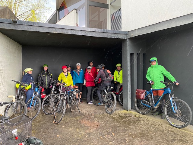 Trotz der sehr schlechten Wetterprognose trafen sich am Freitag, 5.5.2023 13 Radelnde zum Feierabendradeln. Am Hochsträß waren schon dunkle Gewitterwolken in Sicht und die Schwüle ließ schon den Regen erahnen. Wir fuhren trotzdem los, mussten dann jedoch auf Höhe von Schloss Erbach ziemlich flott einen Unterstand suchen, um uns vor dem Regen und Hagel zu schützen. Nachdem das erste Gewitter durchgezogen war, fuhren wir noch eine kleine Runde am Donaudamm entlang, um dann rechtzeitig vor dem dann auftretenden Unwetter wieder zu Hause zu sein. 24 km konnten wir somit zumindest pro Person fürs Stadtradeln verbuchen.