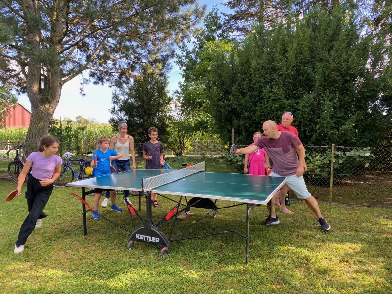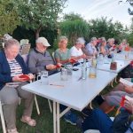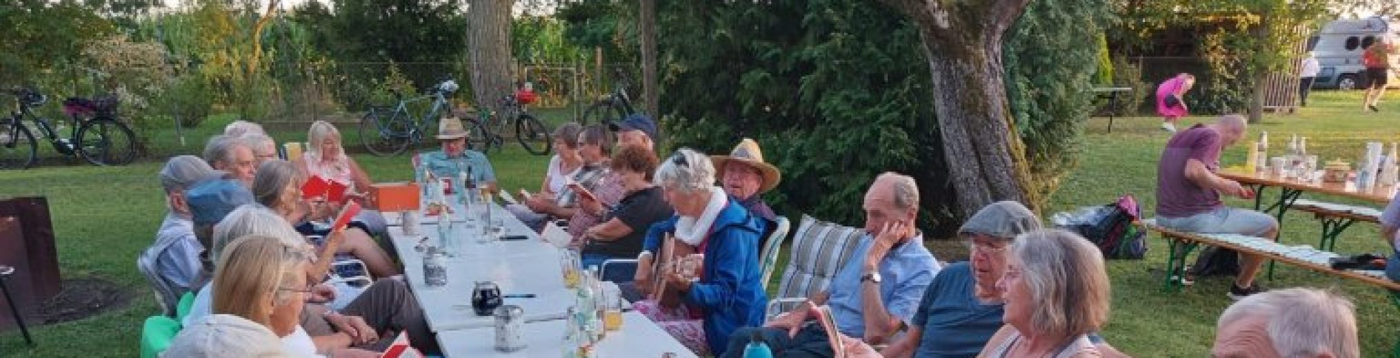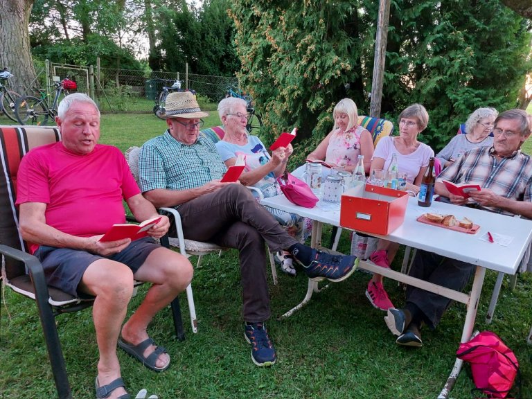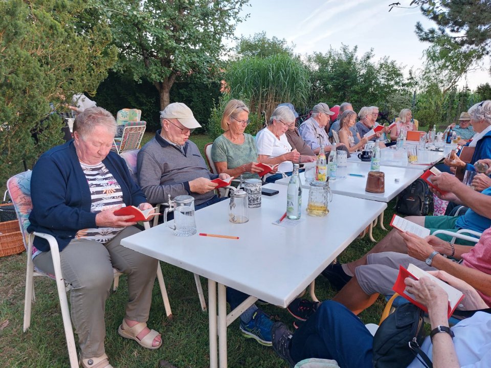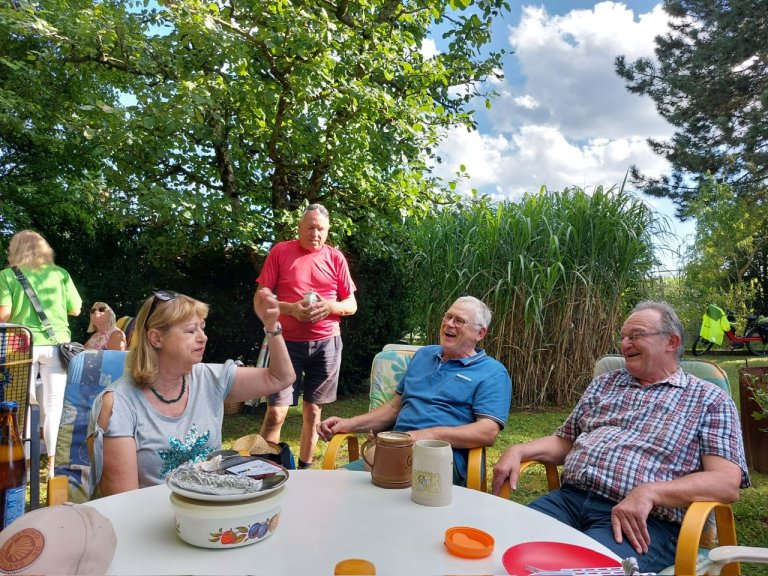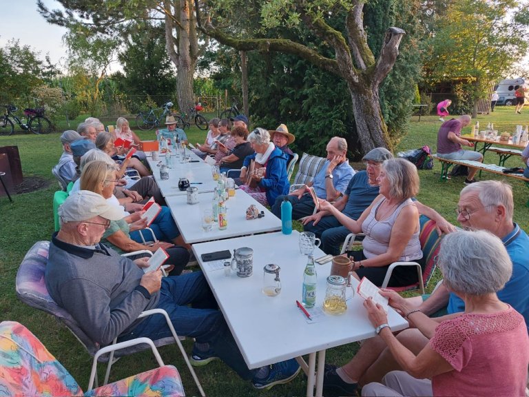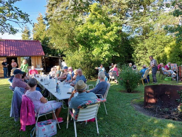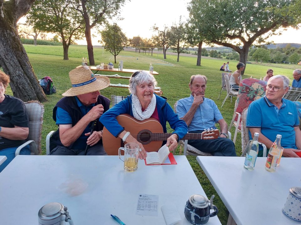 Am Samstag, 02.09.2023 war es wieder soweit und mehr als 50 Mitglieder der Ortsgruppe versammelten sich beim traditionellen Sommerfest in Maiers Garten. Das Wetter hätte nicht besser sein können! Bei strahlendem Sonnenschein und Temperaturen von 25 Grad fühlte man sich fast so wie im Hochsommer. Bis spät in den Abend hinein wurde das gesellige Beisammensein genutzt, um gemeinsam zu grillen, zu essen und zu trinken, sich auszutauschen und viel zu lachen wie auch die schöne Abendstimmung und den Sonnenuntergang und gegen später auch das Sitzen rund ums Lagerfeuer zu genießen. Wer es sportlich haben wollte, konnte sich beim Tischtennisrundlauf oder Volleyball körperlich verausgaben. Auch gab es einige hart umkämpfte Spiele „jung gegen alt“, die ziemlich ausgewogen mal die „Alten“, wie auch die „Jungen“ für sich entscheiden konnten. Besonders schön war es, dass gemeinsam in großer Runde die alten Volkslieder aus unserem Albvereinsbüchlein gesungen wurden. Das gab es schon viele Jahre nicht mehr! Vielen Dank an Margarete Haizmann für die Organisation und Gitarrenbegleitung (-> und wer es „verschmeckt hat“ und regelmäßig singen möchte, ist herzlich eingeladen, zu den jeweiligen Singtreffen der Ortsgruppe zu kommen/nächster Termin 15.9.2023).