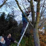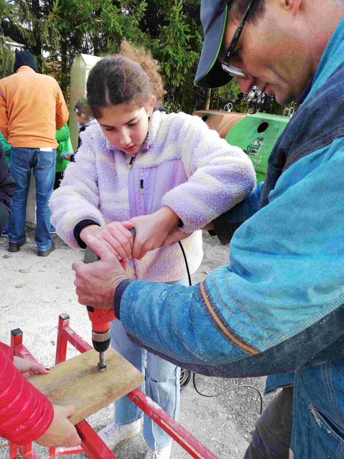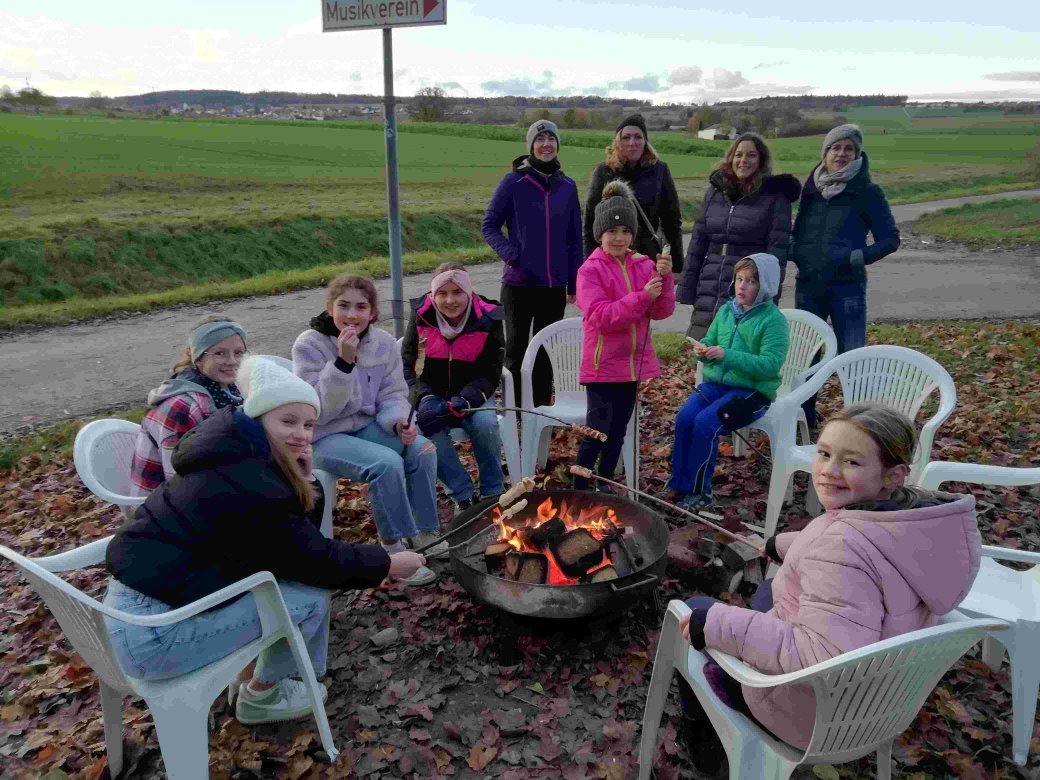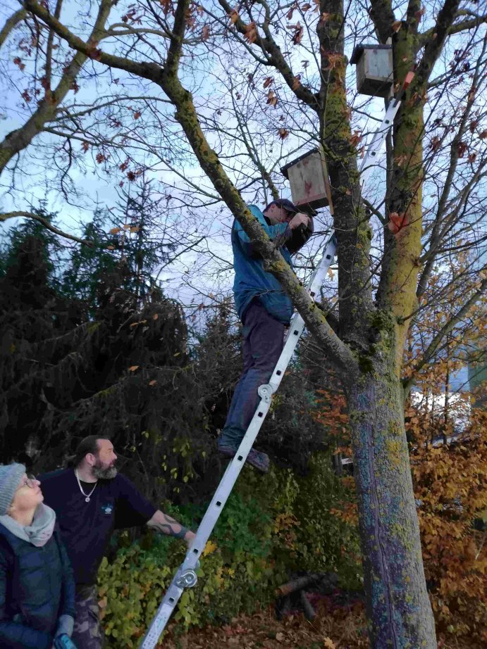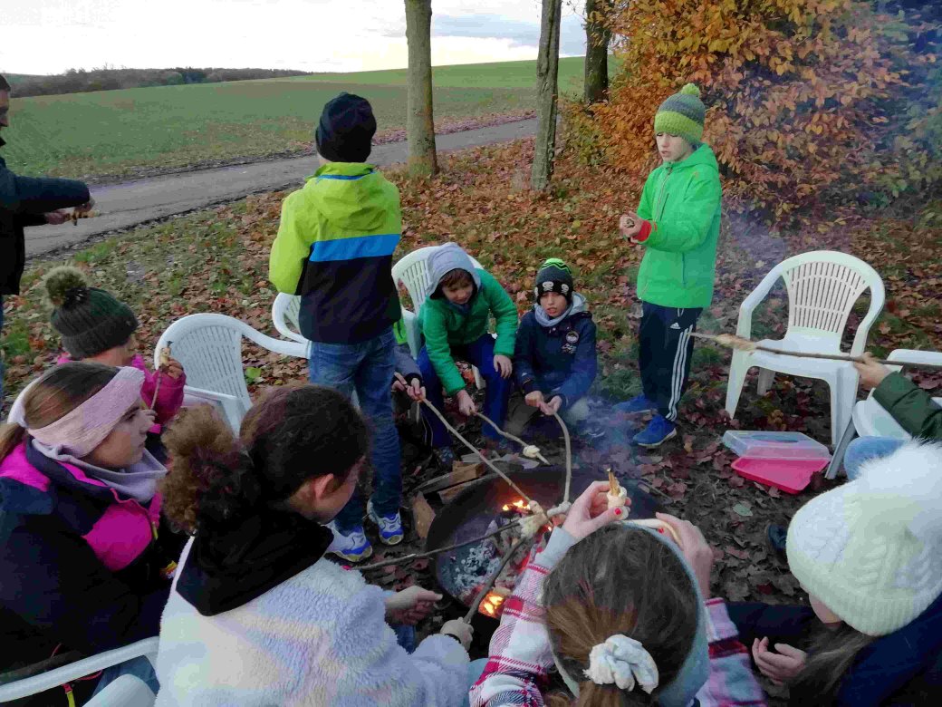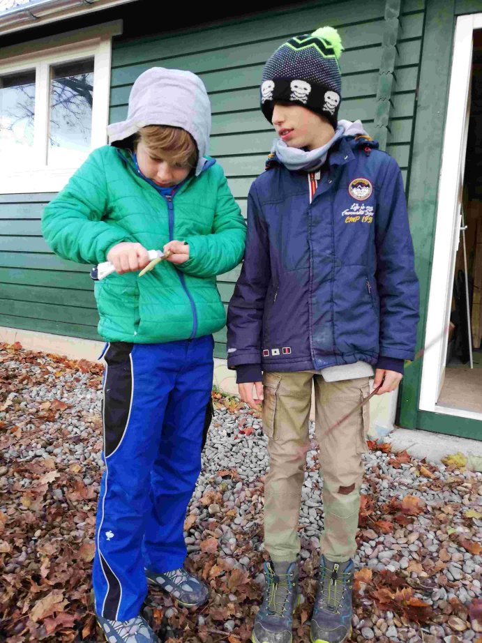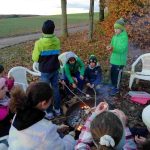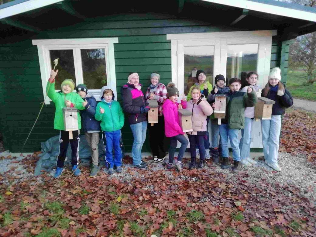 Am letzten Samstag bauten bei kühlem, freundlichen Novemberwetter 12 Kinder und ein paar Erwachsene in Kleingruppen insgesamt 5 Nistkästen. Los ging‘s am Jugendtreff am frühen Nachmittag. Zuerst mussten die benötigten Teile aufgezeichnet werden. Anschließend durften die Kinder unter Aufsicht die Bretter selbst zuschneiden und die Vogelhäuschen zusammenschrauben. Über den Durchmesser des Loches an der Vorderseite können die zukünftigen Bewohner gesteuert werden (Blaumeisen kommen durch Löcher ab 26 mm, Spatzen benötigen mindestens 35 mm). Nachdem die Nistkästen fertig waren, wurde der Tag am Lagerfeuer mit Stockbrot beendet. Wem es zu kalt wurde, konnte sich im Jugendtreff etwas aufwärmen.