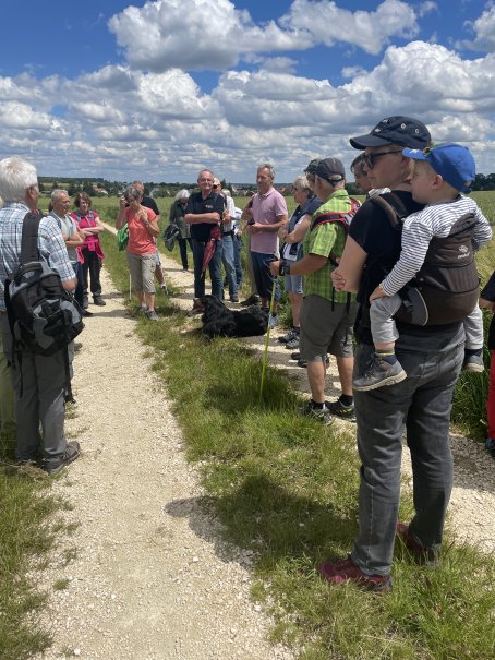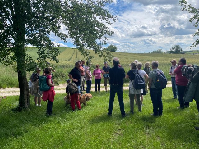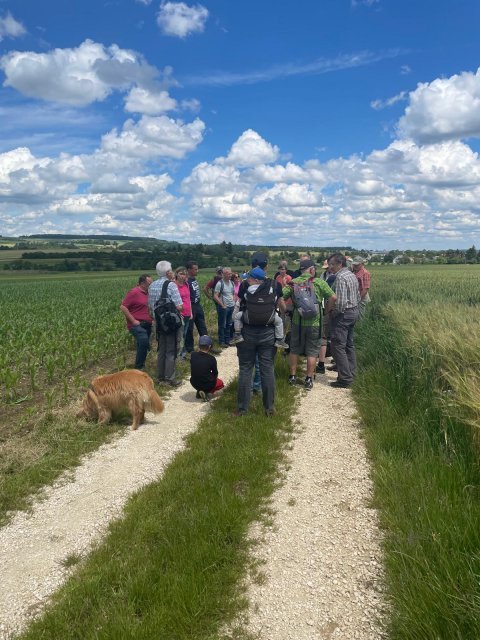 28 Wandersleute und 3 kleine Wanderer fanden sich ein, um mit Karl Göggelmann durch die Felder rund um Einsingen, Eggingen nach Wernau zu laufen und um sich über die Früchte und Getreide, die bei uns angebaut und erzeugt werden, informieren zu lassen. Viele Fragen wurden gestellt und es wurde schnell klar, mit welchen wechselnden Bedingungen die Landwirte jeden Tag umgehen müssen und wie wertvoll ihre Arbeit ist.