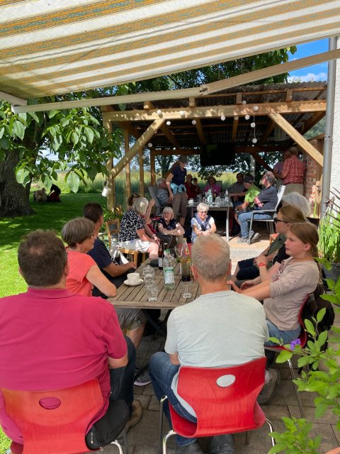 Die Sonne brannte ordentlich vom Himmel und wir waren froh, als wir zum Zwischenstopp in Wernau ankamen. Dort wurden wir mit Getränken und Kaffee versorgt und konnten wieder auftanken, bevor wir den Heimweg nach Einsingen antraten und bei “Öli“ noch eine Schlußeinkehr machten. Herzlichen Dank an Karl und Jeannette für die Gastfreundschaft!
