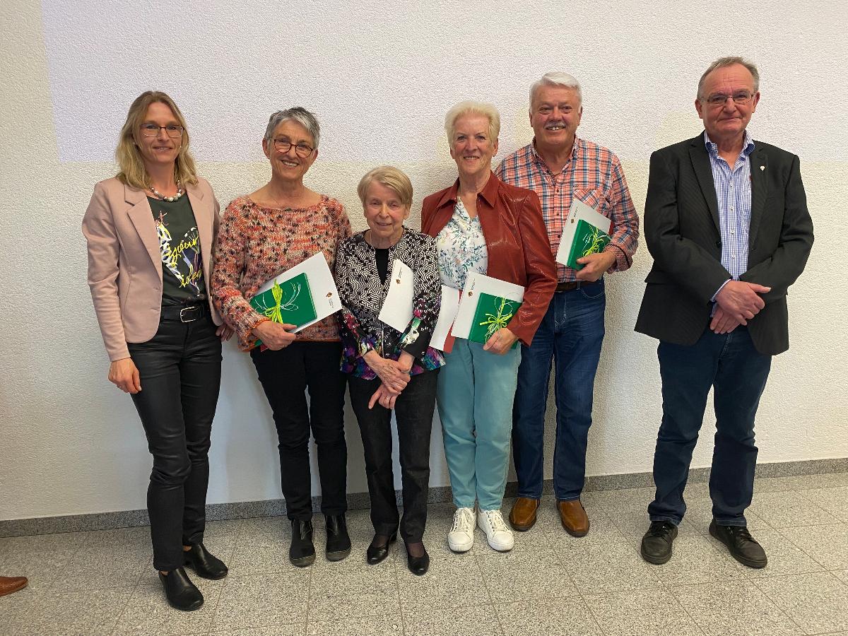 Für ihre langjährige ehrenamtliche Tätigkeit und ihre Verdienste für den Verein wurden Ulrich Schuster, Gerhard Schröder, Hanne Volz, Jürgen Eberle, Michael Braun und Monika König (nicht auf dem Bild mit dabei) mit der silbernen Ehrennadel ausgezeichnet.