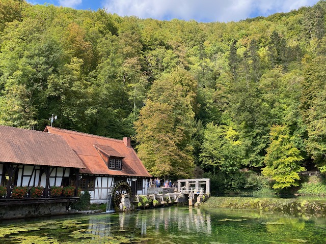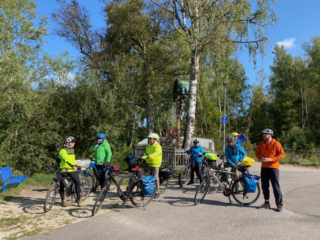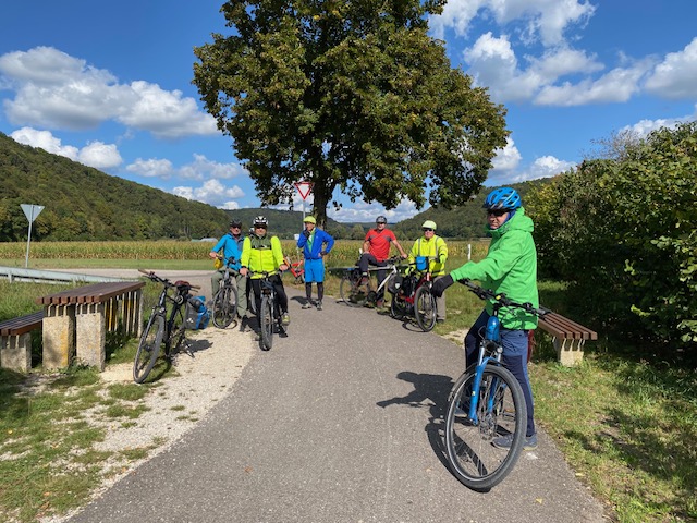 Wenn die Sonne am Erdäquator schon in der Mittagszeit den Zenit erreicht, dann sind Tag und Nacht gleich lang und dieser Moment läutet den kalendarischen Herbstanfang ein. Somit war es nicht verwunderlich, dass 8 Radelnde quasi zum Herbstanfang relativ warm eingepackt mit teilweise Stirnband und Handschuhen sich am Sonntag, 24.09.2023 um 10 Uhr zur Blautalrunde trafen. Bei Temperaturen im Tagesverlauf zwischen 8 und 16 Grad, sowie einem Wechsel zwischen Sonne und Wolken wurde unterwegs mal etwas aus- oder auch wieder angezogen. Die Genussradtour mit 2 Einkehrstopps führte über Ulm, durchs wunderschöne Blautal, an vielen schönen und idyllischen Gewässern wie z.B. dem Blautopf, dem Urspringquelltopf, der Schmiech und der Ach vorbei, sowie auch auf idyllischen Wiesen- und Schotterwegen von Ehingen nach Einsingen an der Donau entlang. Bei der ersten Einkehr um 5 Minuten vor 12 Uhr hatten wir Glück, dass wir noch Plätze am Blautopf ergatterten. Eine weitere angedachte Einkehr in einer Eisdiele in Ehingen war aufgrund des dortigen Stadtfestes und Straßenumzugs nicht möglich. Stattdessen radelten wir gemütlich weiter, genossen eben kein Eis sondern die Natur und die bereits leicht herbstlichen Farben und kehrten kurz vor Einsingen gegen 16 Uhr am Flugplatz Erbach ein.