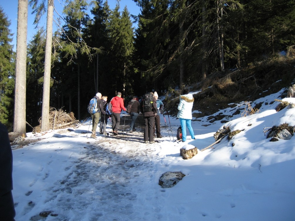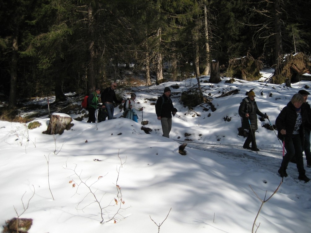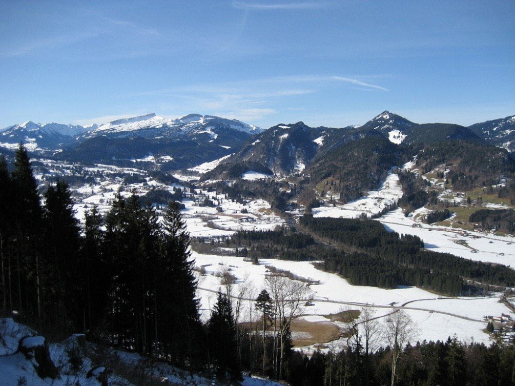 Ab hier folgten wir dem Wallrafweg bis zur Gaisalpe. Der Weg war teilweise etwas rutschig, was aber bei dieser Winterwanderung nicht anders zu erwarten war. Das tolle Wetter und fabelhafte Aussichten säumten fast den ganzen Weg.