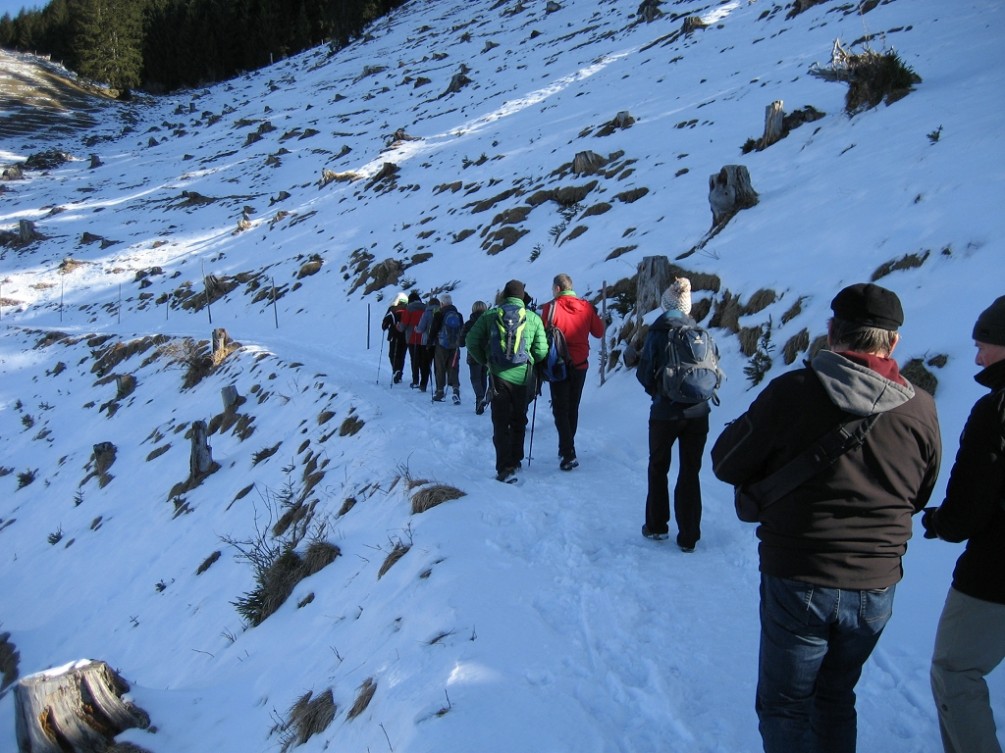 Am Sonntag den 09.02.2020 machten sich bei schönstem Sonnenwetter 16 gutgelaunte Wanderinnen & Wanderer auf den Weg ins Allgäu. Ausgangspunkt unserer Tour war Oberstdorf. Vom Zentrum aus führte der Weg vorbei am Skisprungstadion zum Breitenberg.