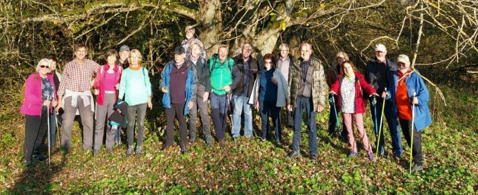 Vom Treffpunkt bei den Weihern fuhren wir bei nebligem Wetter nach Frankenhofen. Wir starteten vom Wanderparkplatz in Frankenhofen bei nahezu wolkenlosem Himmel zu unserer Rundwanderung. Highlights waren der farbenprächtige Herbstwald, das Naturschutzgebiet „Hungerberg“ sowie der Aussichtspunkt „Schneckenhäule“.