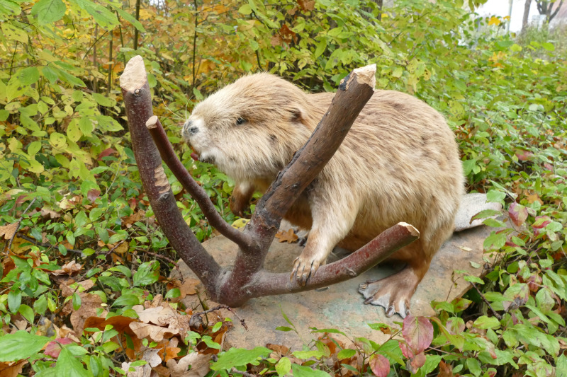 Ein ausgestopfter Biber wurde genau betrachtet und durfte auch gestreichelt werden. Erstaunlicherweise fühlte sich dabei das Biberfell sehr weich und fast kuschelig an, was sich anhand der ca. 11.000 Haare pro Quadratzentimetern Rückenfell erklären lässt. Interessant war auch, dass sich das Alter der Biber an der Zahnfärbung erkennen lässt (je älter, desto orangefarbener). Dass die Biber in der Fastenzeit vor vielen Jahren als Fleischersatz gegessen wurden – denn sie hatten ja eine Schwanzflosse und wurden deshalb zu den Fischen gezählt – ließ uns alle ein wenig schmunzeln.