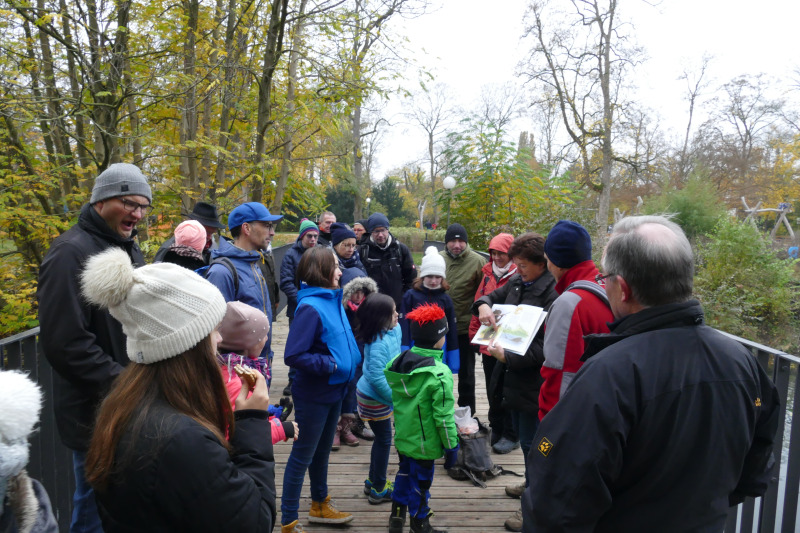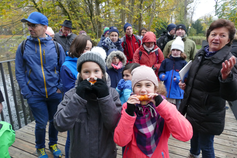 Dass es kalt war, konnten wir zwar am morgendlichen Frost und dem Dauernebel, der auch Mittags der Sonne kein Durchkommen ermöglichte, erkennen. Dass es aber sooooo kalte 2 Stunden wurden, haben wir erst am Sonntag Nachmittag während der Biberwanderung festgestellt. Trotz der gefühlten Minus 10 Grad informierte uns Frau Heuchel vom BUND mit großer Begeisterung über das Leben der Biber in der Friedrichsau und den Herausforderungen, die das Leben für die Menschen wie auch für die Biber mit sich bringen.