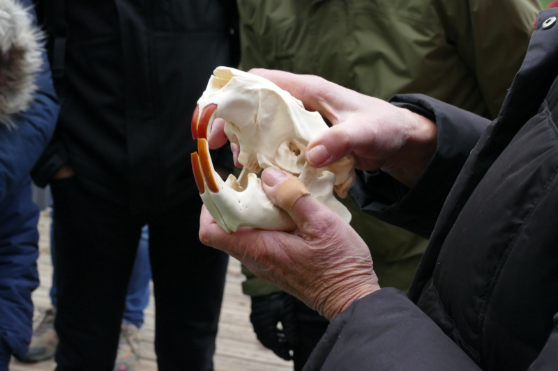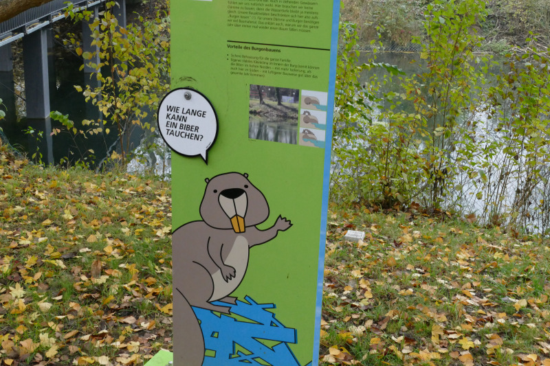 Wir erfuhren vieles über die Ernährung des Vegetariers, über das Biber-Revier und den Biberbau, sowie über Familienverbünde und dass sich Jungtiere bereits nach 2 Jahren ein eigenes Revier erobern müssen. Das erfolgt oft mit erbitterten Kämpfen und Bisswunden der Biber und endet meist auch tödlich aufgrund der daraus resultierenden Infektionen.