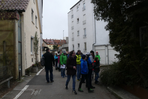 Nach einer ersten Einweisung in die Handhabung der GPS-Geräte und Informationen zur Suchaktion ging es los. Über 13 Einzelstationen wurden wir durch einen älteren Teil von Neu-Ulm  hindurchgeführt bzw. mit dem immer stärker werdenden Wind sogar buchstäblich durch die Gassen und Straßen hindurchgefegt.