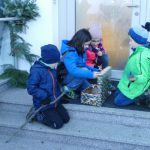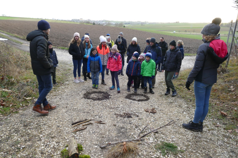 Kreatives Highlight war die Erstellung von zwei Krippenbildern mit vorbereiteten Materialien aus dem Wald. Im Rahmen eines Zeitfensters von 5 Minuten traten die Kinder gegen die Erwachsenen an. Das Ergebnis: zwei sehr kreative Bilder – eindeutige Sieger waren jedoch die Kinder. Das beigefügte Gruppenfoto am Waldrand ist hierbei entstanden.