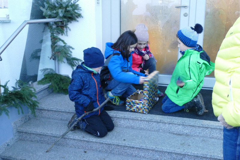 Mit Gongschlag 16 Uhr kamen wir wieder am Musikerheim an, um ein abschließendes Weihnachtsrätsel zu lösen, das die Kinder zum Weihnachtsschatz führte. Zusammen mit weiteren Mitgliedern der Familiengruppe, die mittlerweile ebenfalls im Musikerheim eingetroffen waren, freuten wir uns auf eine schöne Jahresabschlussfeier mit Kaffee, Kinderpunsch und Kuchen im warmen Musikerheim.