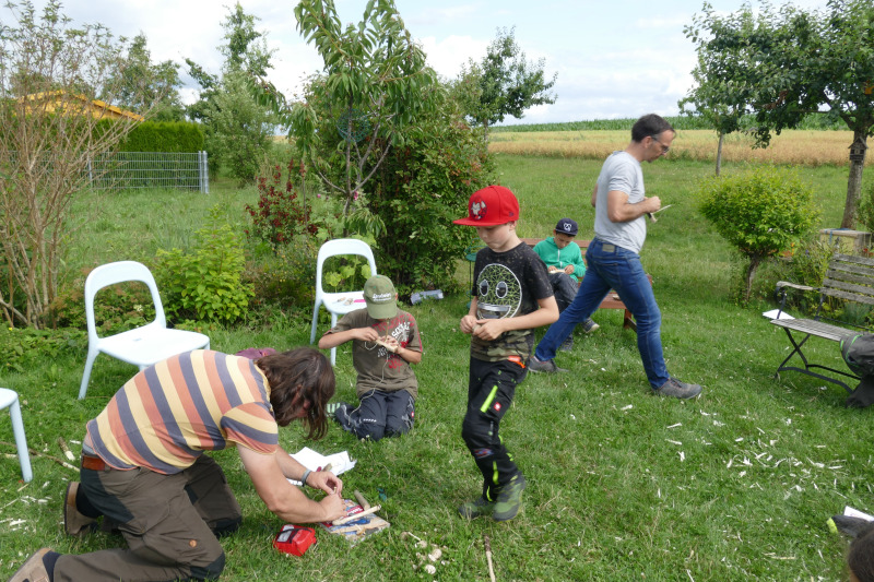 Am Samstag, 13.07.2019, gab es exklusiv für die Einsinger Albvereinskinder einen Schnitzkurs, der durch den Naturpädagogen Sebastian Besier durchgeführt wurde.