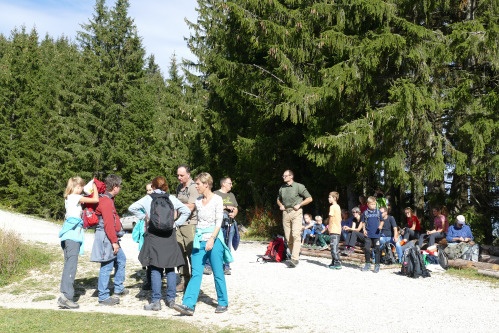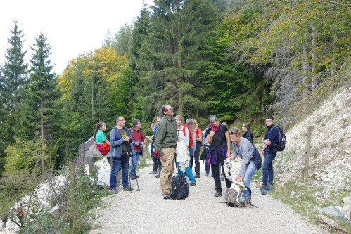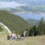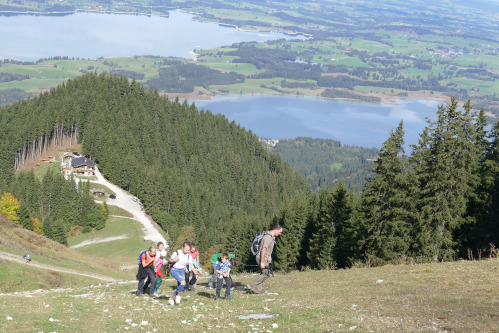 Wir 41 Wanderer hatten dasselbe Ziel – wir wollten das auf 1.707 m hoch liegende Tegelberghaus erreichen. Der Aufstiegsteil der Tour führte über viele schöne Aussichtspunkte über die Rohrkopfhütte zum Tegelberghaus. Ca. 800 Höhenmeter wurden je nach Lust, Laune und Leistungsvermögen in 2 1/4 bis 3 Stunden schwitzend und schnaufend erklommen. Toll, dass es alle geschafft haben!