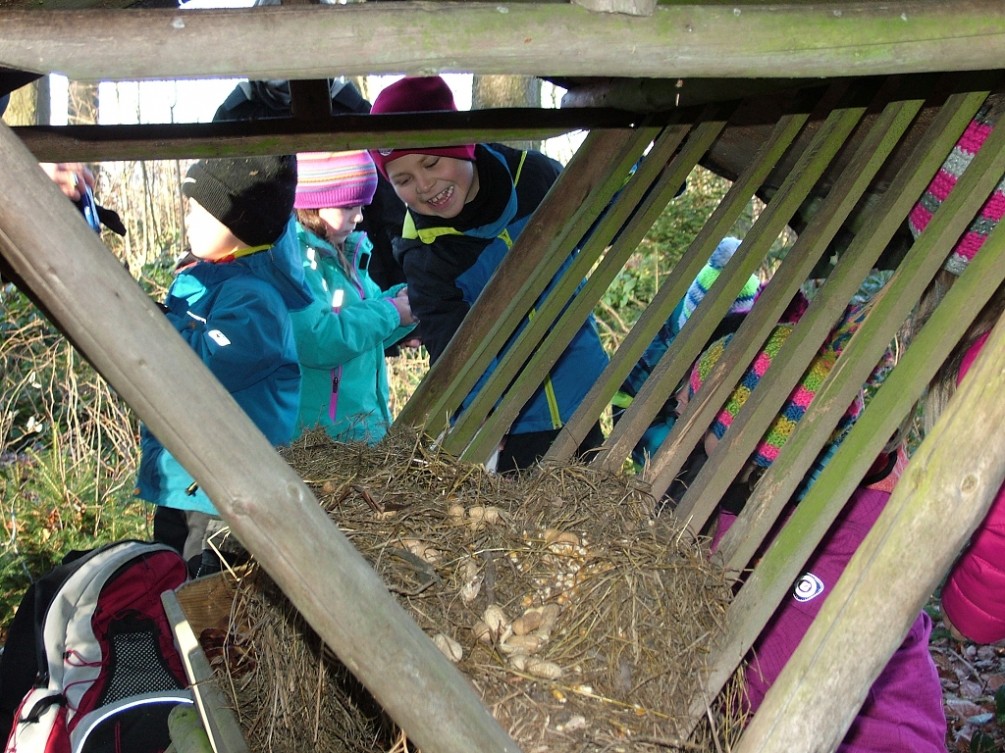 Am Samstag, 03.12.2016 fand zusammen mit der ganzen Ortsgruppe Einsingen die Jahresabschlussfeier im Musikerheim Einsingen statt. Vor dem „gemütlichen Teil“ haben wir uns noch etwas Tolles überlegt, nämlich eine Waldweihnacht für Tiere. Um 13.15 Uhr ging es los – und wie bei den vorherigen Aktionen der Familienwandergruppe strahlte die Sonne mit den Kindern wieder um die Wette. 10 Familien starteten gut ausgerüstet und warm eingepackt bei etwas frostigen 4 Grad die kleine Wanderung zu einer Futterkrippe in den Wald, um den Tieren ihre Geschenke, wie z. B. Kastanien, Mais und Nüsse zu bringen. Mit Begeisterung füllten die Kinder die Futterkrippe und dekorierten den kalten Waldboden mit ihren Geschenken. Manch eine Erdnuss fand auch den Weg in den Kindermund, denn der erste Hunger kam mit getaner Arbeit – aber wir hatten ausreichend „Futter“ für alle dabei und sollte die ein oder andere Familie Lust haben, nochmals für Nachschub bei den Tieren zu sorgen, dann kennen nun alle auch den Weg zur Krippe. Einige Kinder, die sich etwas abseits der Futterkrippe aufgehalten hatten, berichteten uns sogar von 2 neugierigen Rehen, die unserem Treiben wohl aus sicherer Entfernung zugesehen hatten und dann im Wald verschwunden sind.