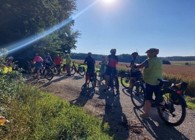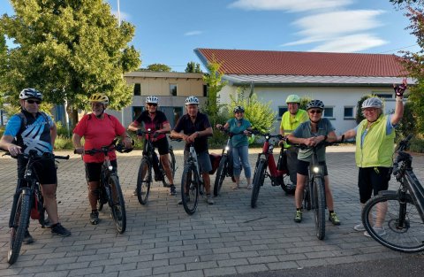 11 „Motorräder“ machten sich am Do. 07.08.25 auf, um eine kleiner, aber anspruchsvolle Feierabendrunde zu radeln. Wir starteten um 17:00 Uhr. An der „Alten Turnhalle“ vorbei ging es zur Keltenschanze zwischen Eggingen und Erbach. Weiter an der Waldsandgrube durch das Steintal Richtung Ringingen, was wir aber links liegen gelassen, um mit einem scharfen Rechtsknick nach Erstetten zu radeln. Hier mussten wir ordentlich in die Pedale treten, um Höhenmeter zu machen. Oben angekommen ging es auf einem schönen Asphaltweg Richtung Markbronn. Über das Salenhau mit ein paar rechts-links Schlenker ließen wir es auf dem Sandweg nach Einsingen ausrollen. Bei diese kurze, knackige 2-stündigen Tour mit 25 km und 300 Höhenmeter konnten die E-Bikes ihr Leistungsvermögen zeigen.
