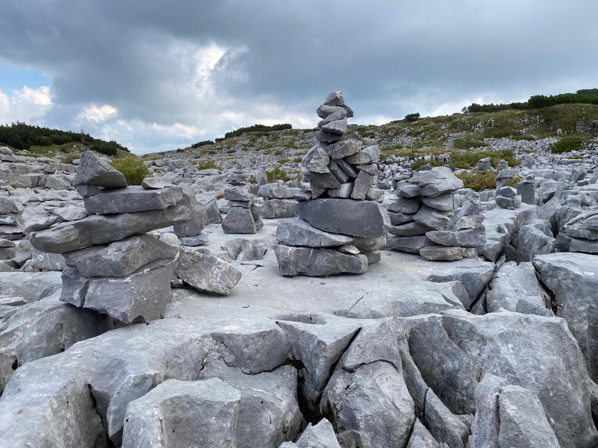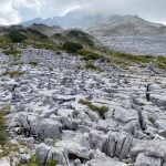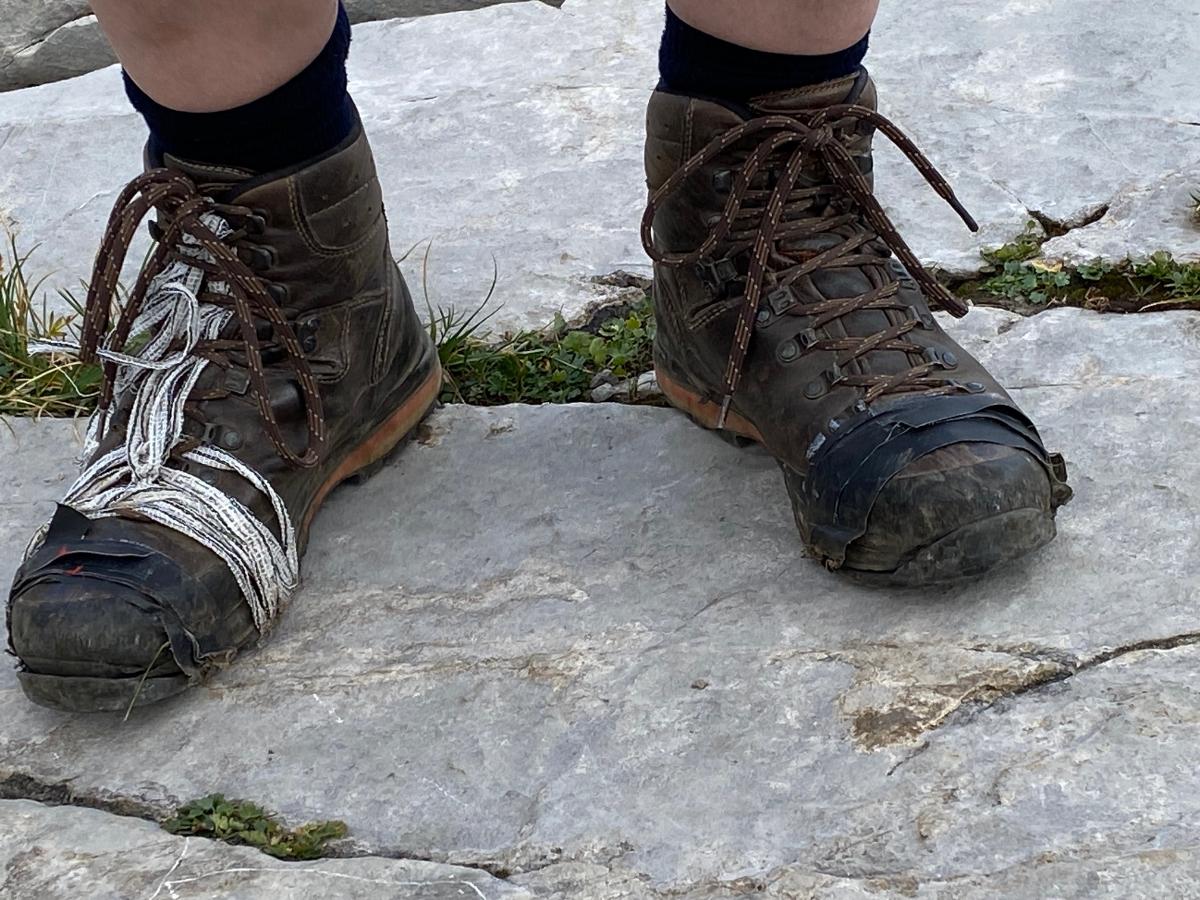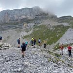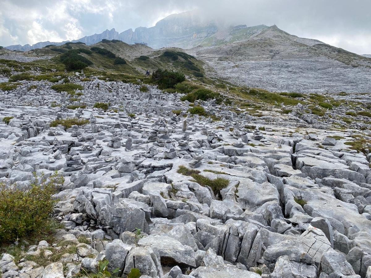 Erst gab es nur 6 Anmeldungen, doch dann hatten sich viele Kurzentschlossene nicht nur wegen des tollen Sommerwetters sondern auch wegen der Einzigartigkeit der dortigen Landschaft für die Tour angemeldet. Insgesamt waren wir dann 16 Wanderer. Unser Wanderführer Gerd führte uns nicht so, wie die meisten Tourenempfehlungen es vorsehen, sondern „andersherum“, d.h. wir wanderten übers Oberwäldele den Berg hinauf. Es ging über viel Schrattenkalk durch die wild zerklüftete Karstlandschaft des Gottesackerplateaus  bis hinauf zur Bergstation des Ifenlifts. Der Gang über das Plateau erforderte volle Aufmerksamkeit, um nicht in eine der vielen Felsspalten zu treten. An einigen Stellen waren wir auch auf allen Vieren unterwegs. Oben angelangt hatten wir den eindrucksvollen Blick auf die steilabfallenden Wände des Ifen. Hinunter ging es an der Ifenbahn vorbei und die letzten 300 Höhenmeter auf naturnahen Wegen zurück zum Ausgangspunkt, dem Ifen-Parkplatz. Da es unterwegs keine Einkehrmöglichkeit gab, freuten wir uns umso mehr auf ein kühles Getränk und ein leckeres Essen in der Auenhütte. Und der ein oder andere Wanderer freute sich auch darauf, nach 8 Stunden (Wanderdauer 9-17 Uhr) endlich aus den Bergschuhen herauszukommen. Einen Wanderer gab es, der sich für die nächste Tour neue Wanderschuhe besorgen muss, denn nach 1,5 Stunden Wanderung hatte sich zuerst die rechte, dann die Linke Sohle vom Schuh gelöst. Glücklicherweise konnten wir diese mit diversen (Klebe-)Bändern notdürftig reparieren, sodass wir die Tour zusammenbleibend in der Gruppe durchführen konnten.