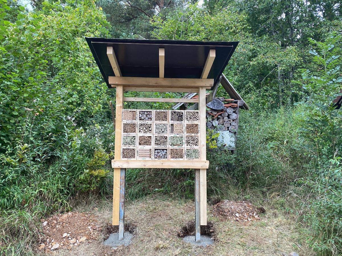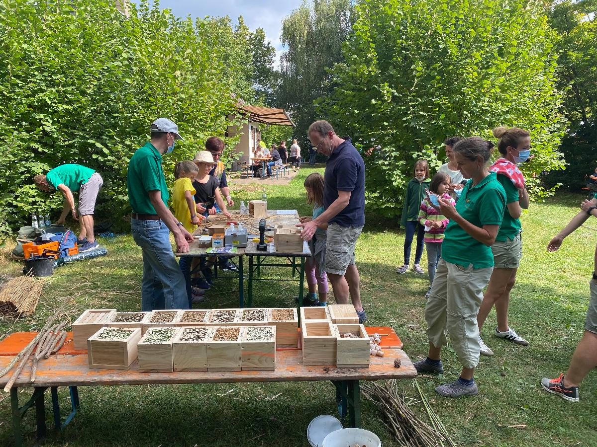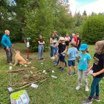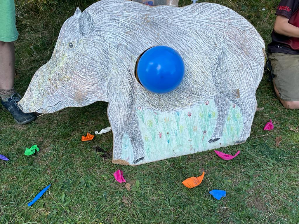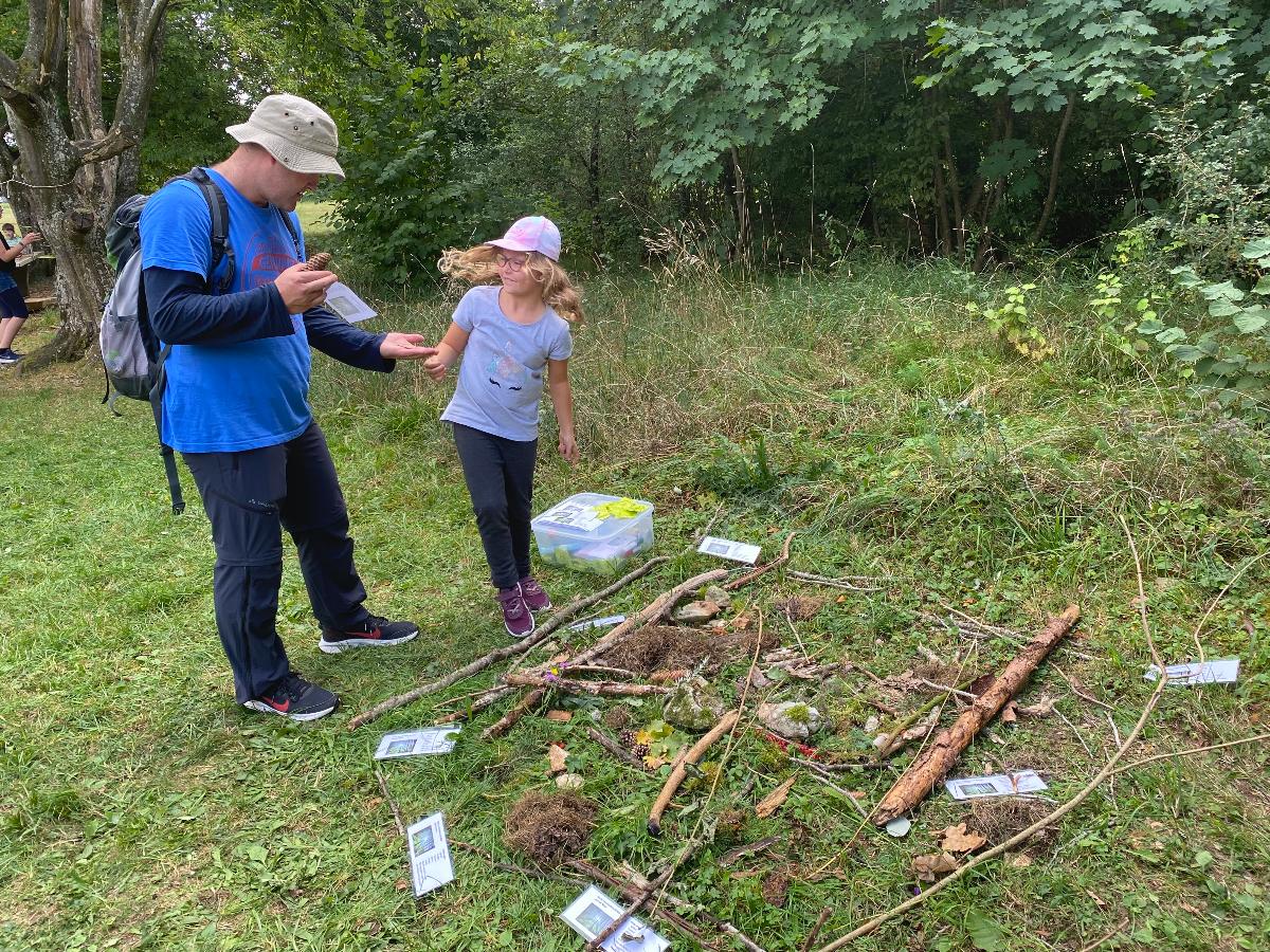 Es wurde z. B. ein Barfußpfad errichtet, der dauerhaft in Weidach zur Verfügung steht, eine GPS-Tour wurde angeboten sowie Stockbrot und Pfannkuchen am Lagerfeuer gegrillt. Ein besonderes Highlight war die gemeinsame Herstellung eines Wildbienenhotels, das sogar am Sonntag Spätnachmittag final aufgebaut werden konnte. Es gab Spiel und Spaß beim Wildschwein-Stechen, Dosen werfen, kreativem Gestalten eines Naturbildes, Slackline-Balancieren, Hau die Erbse, Seilhüpfen, Fühlstraße und noch vieles mehr. Am Samstag hatten wir sogar eine Falknerin der Burg Hohenneuffen gewinnen können, die ihre Greifvögel präsentiert hatte.