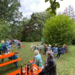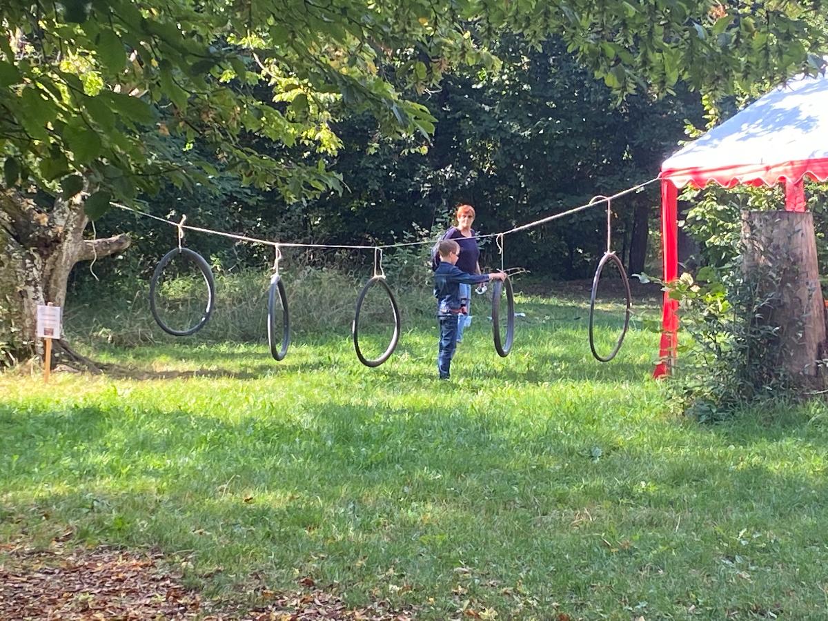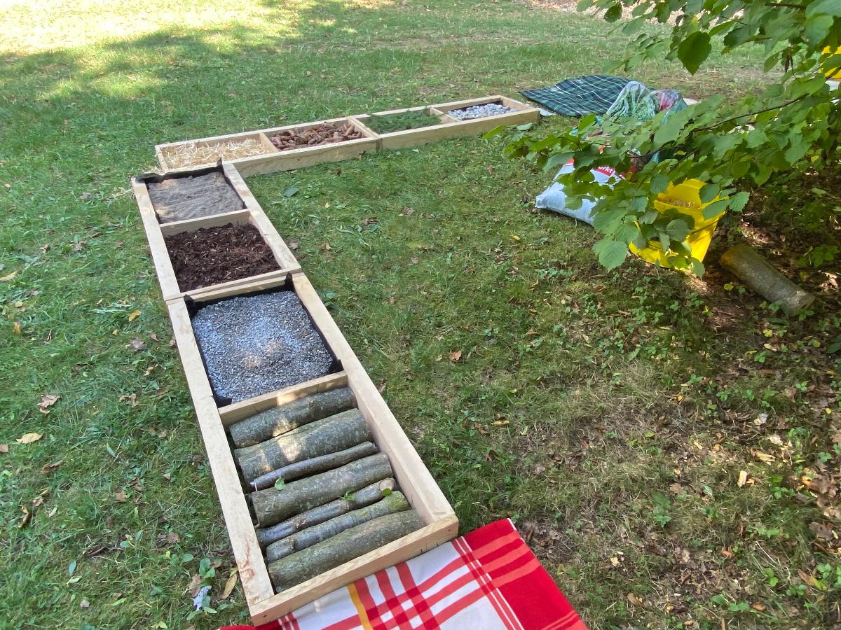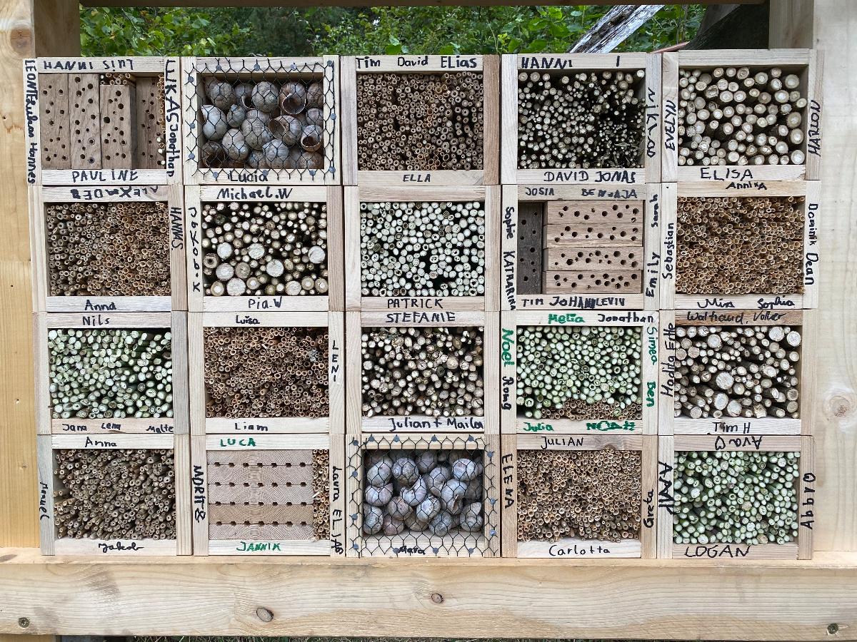 Es wurde z. B. ein Barfußpfad errichtet, der dauerhaft in Weidach zur Verfügung steht, eine GPS-Tour wurde angeboten sowie Stockbrot und Pfannkuchen am Lagerfeuer gegrillt. Ein besonderes Highlight war die gemeinsame Herstellung eines Wildbienenhotels, das sogar am Sonntag Spätnachmittag final aufgebaut werden konnte. Es gab Spiel und Spaß beim Wildschwein-Stechen, Dosen werfen, kreativem Gestalten eines Naturbildes, Slackline-Balancieren, Hau die Erbse, Seilhüpfen, Fühlstraße und noch vieles mehr. Am Samstag hatten wir sogar eine Falknerin der Burg Hohenneuffen gewinnen können, die ihre Greifvögel präsentiert hatte.