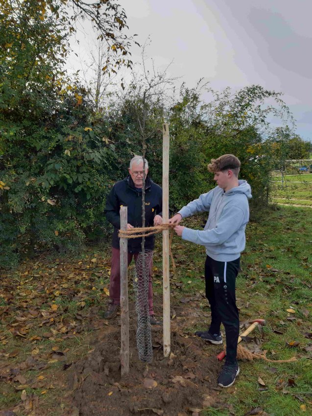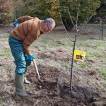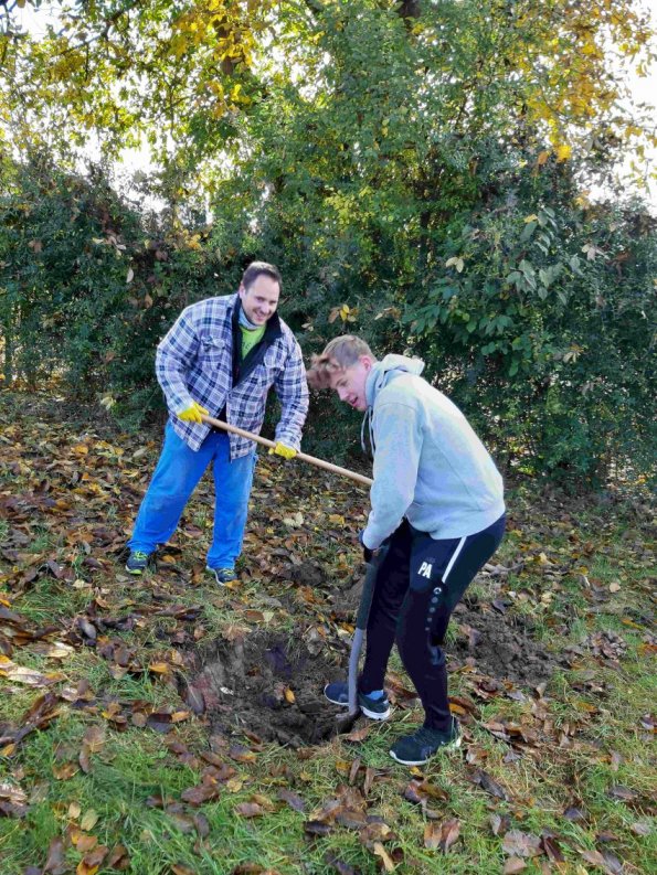 6 Einsinger Familien haben an dieser Aktion teilgenommen. Also es wird auch in Einsingen nochmal „grüner“. Hervorzuheben ist, dass 2 Familien ihren Baum in die Hände des Albvereins weitergaben. Diese 2 Bäume Obstbäume wurden zwischenzeitlich auf der Pfarrwiese eingepflanzt. Hier hatten wir tatkräftige Unterstützung durch unseren Naturschutzwart und aus unserer Jugendgruppe. So konnten die Beteiligten Wissenswertes hinsichtlich Pflanzung erfahren über Standort, Ausrichtung, Tiefe, Wühlmausschutz, Pfahlpositionierung, Erde (Mischung, Anhäufung), Wasser (Menge und Dauer).