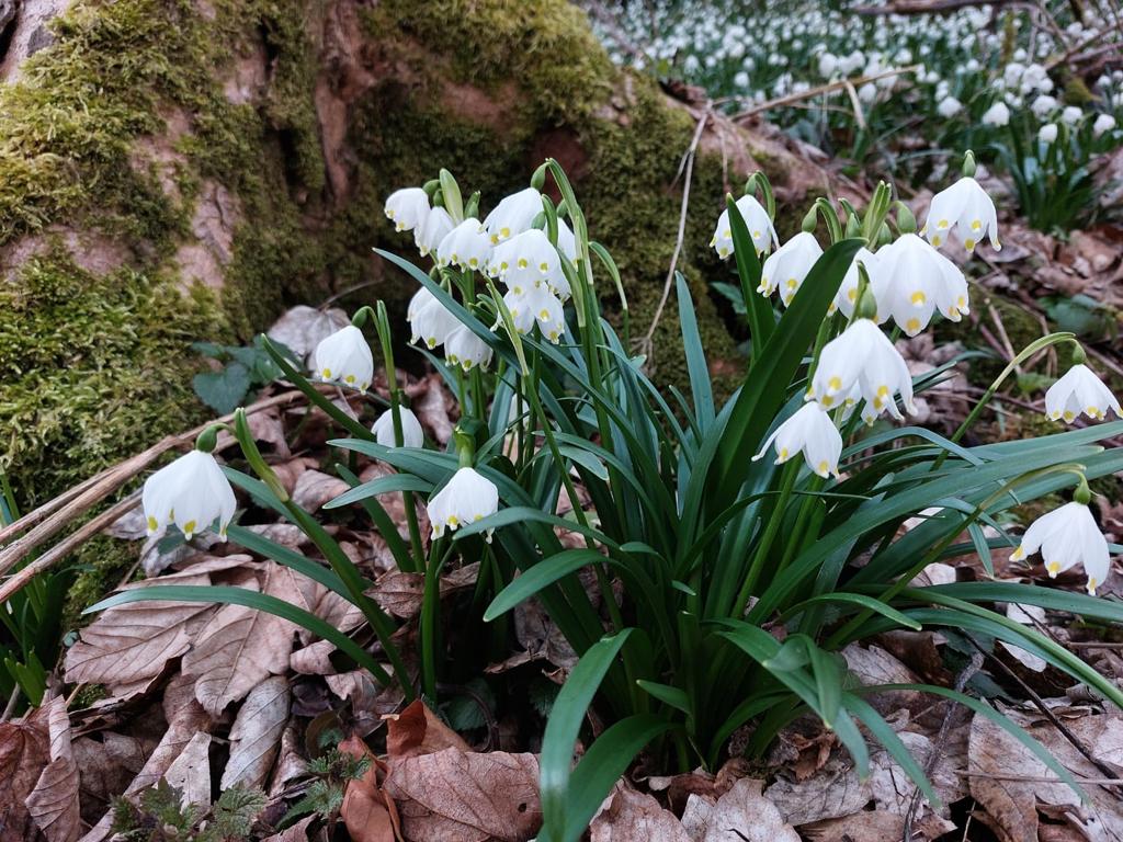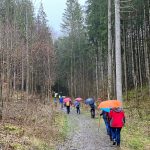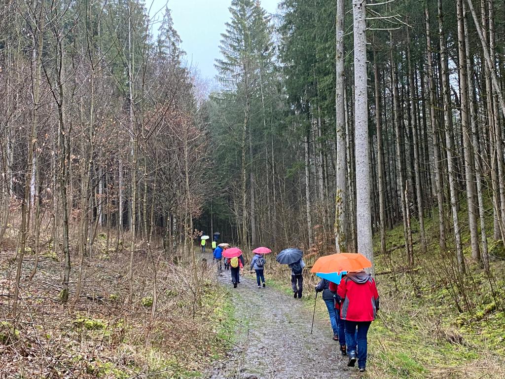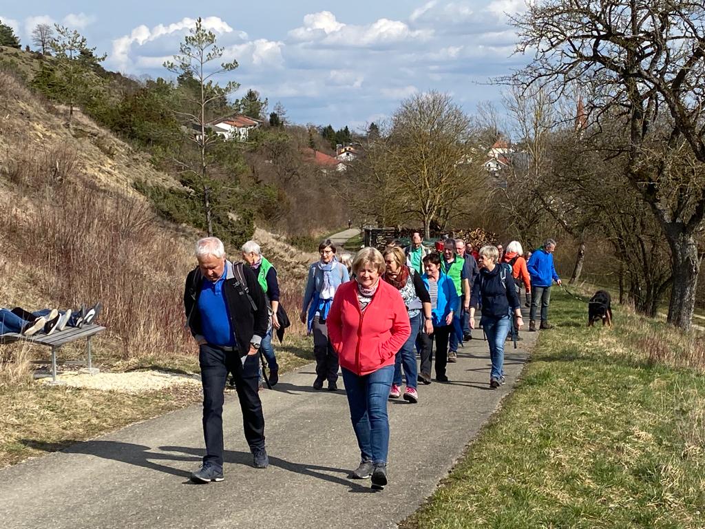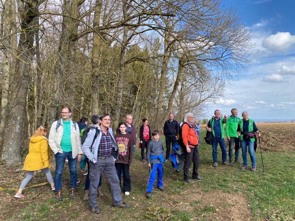 Eine bunt gemischte Gruppe aus Kindern, Erwachsenen und Hund Rudi machte sich am Nachmittag zu einer erlebnisreichen Rundwanderung um Hörvelsingen und den Hagener Tobel auf. Dort wollten wir die vielen Märzenbecher bewundern.