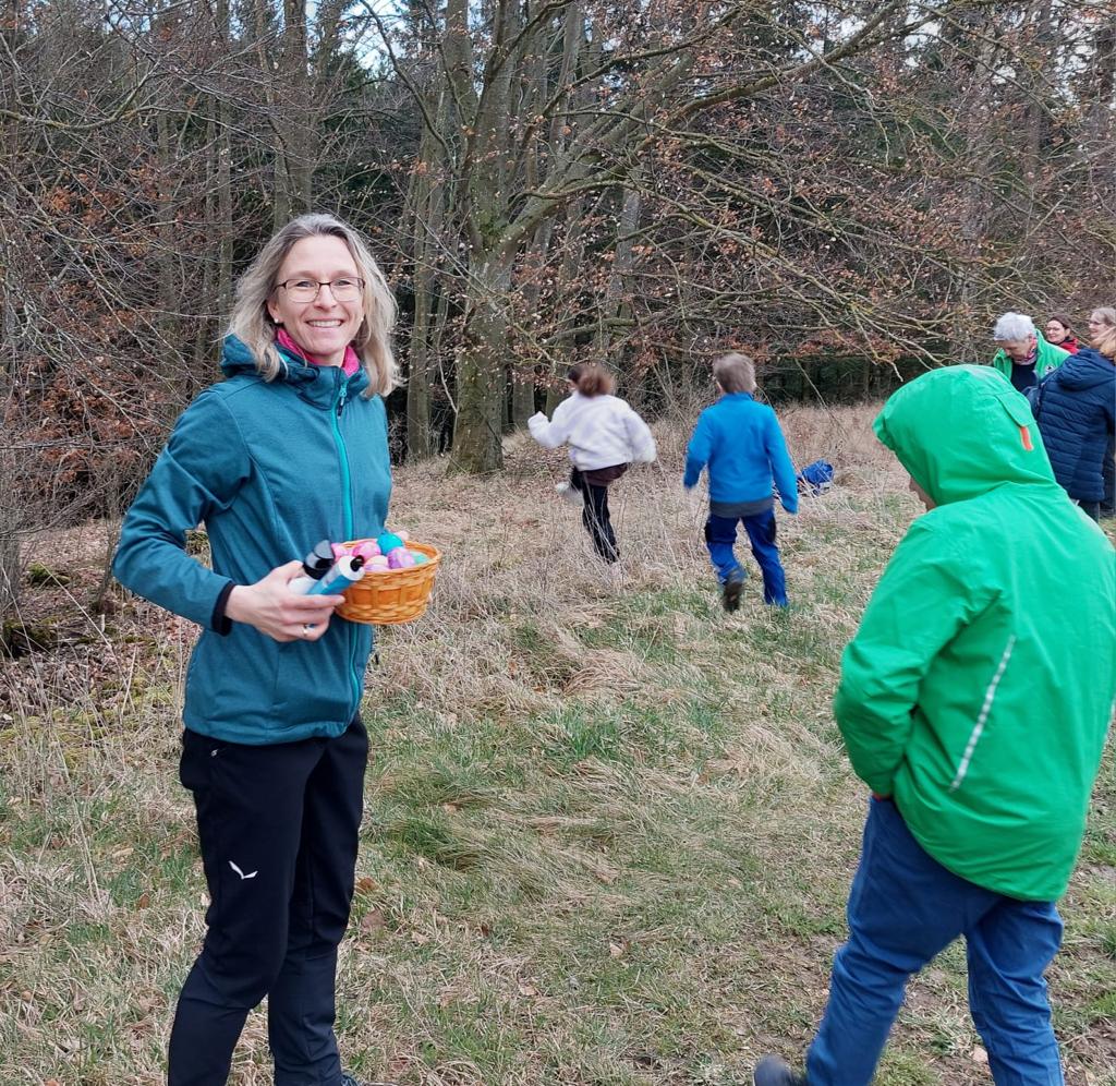 Die Kinder mussten natürlich der Sache sofort auf den Grund gehen und nachschauen, ob der Hase vielleicht etwas verloren oder versteckt hatte? Tatsächlich war das so, jeder konnte eine kleine Überraschung finden und auch die Erwachsenen wurden mit einem Osterei belohnt.