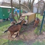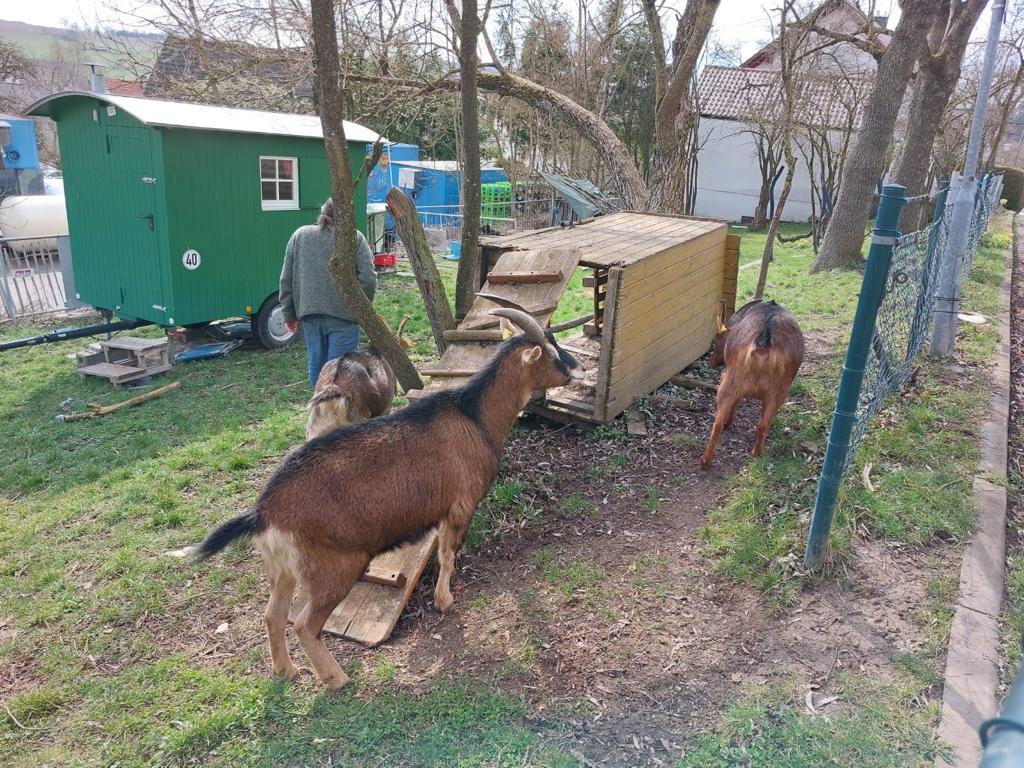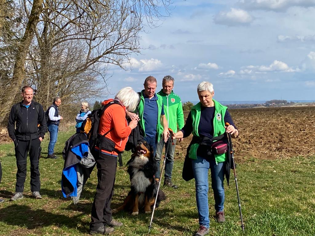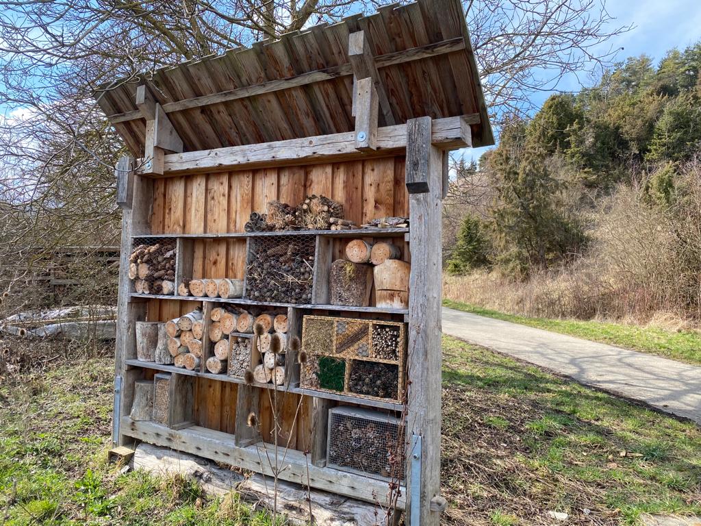 Die ersten Meter hatten wir schon Begleitung von 3 Ziegen, die dann allerdings in ihr Gehege abbiegen mussten und auch ein Wildbienenhotel konnte nach einer kurzen Strecke besichtigt werden. Die Sonne kam vereinzelt zum Vorschein, die Stimmung war gut, und es ergaben sich nette Gespräche unter den Mitwanderern.