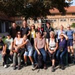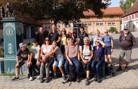 Bei idealem Wanderwetter ging es dann von Münsingen zur Gedenkstätte Grafeneck. Unterwegs trafen wir auf zwei Einsinger Fahrradfahrer, die uns sehr wohl bekannt waren. Da die Zeit für diejenigen knapp wurde nach dem Mittagessen an der Führung im Landesgestüt teilzunehmen, wurde entschieden, dass die einen nach Dapfen zum Mittagessen gehen und die anderen sich das Dokumentationszentrum zur Euthanasie ansehen. Ein Novum, das es in dieser Form beim Einsinger Albverein noch nie gegeben hat, mir aber sehr gut gefallen hat. So konnte jeder nach seinem Gusto den Nachmittag verbringen. Nach und nach trafen sich alle am Brunnen im Landesgestüt.
