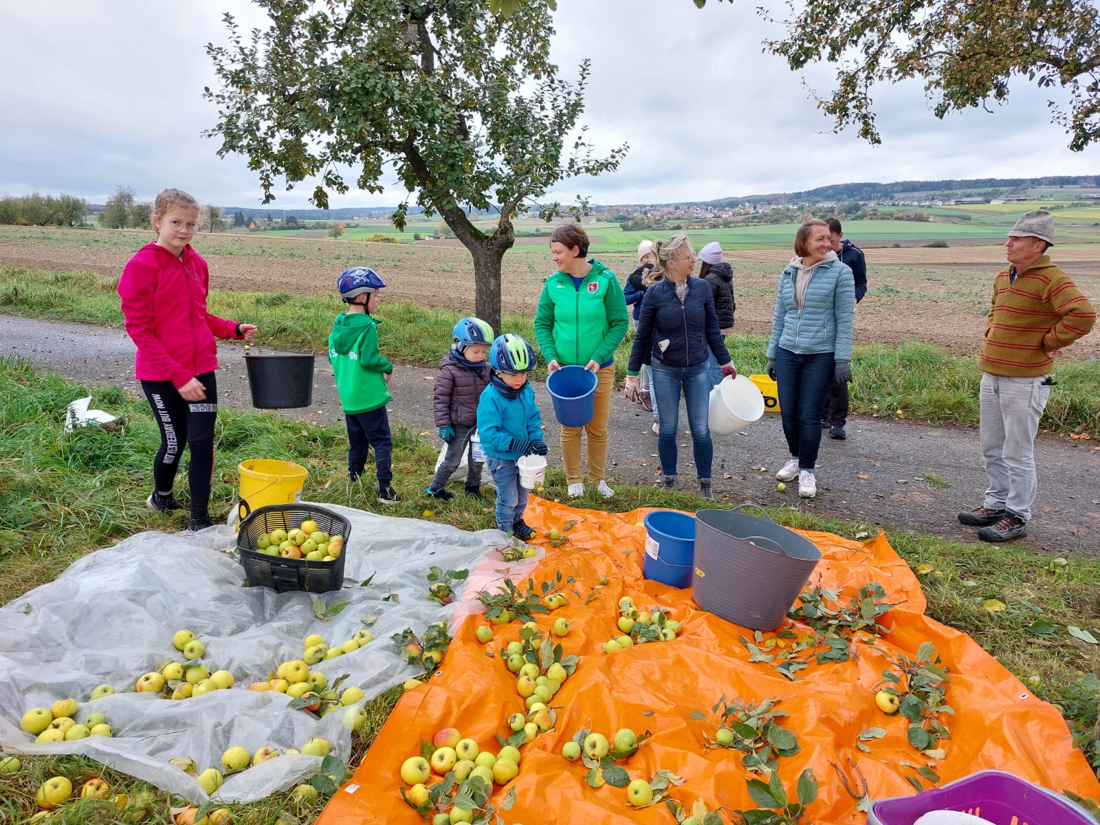 Bericht zur Obsternte vom 12.10. und 14.10.2022: 930 Liter eigenen Apfelsaft vom Pfarrgarten, Schulberg und Darrenberg