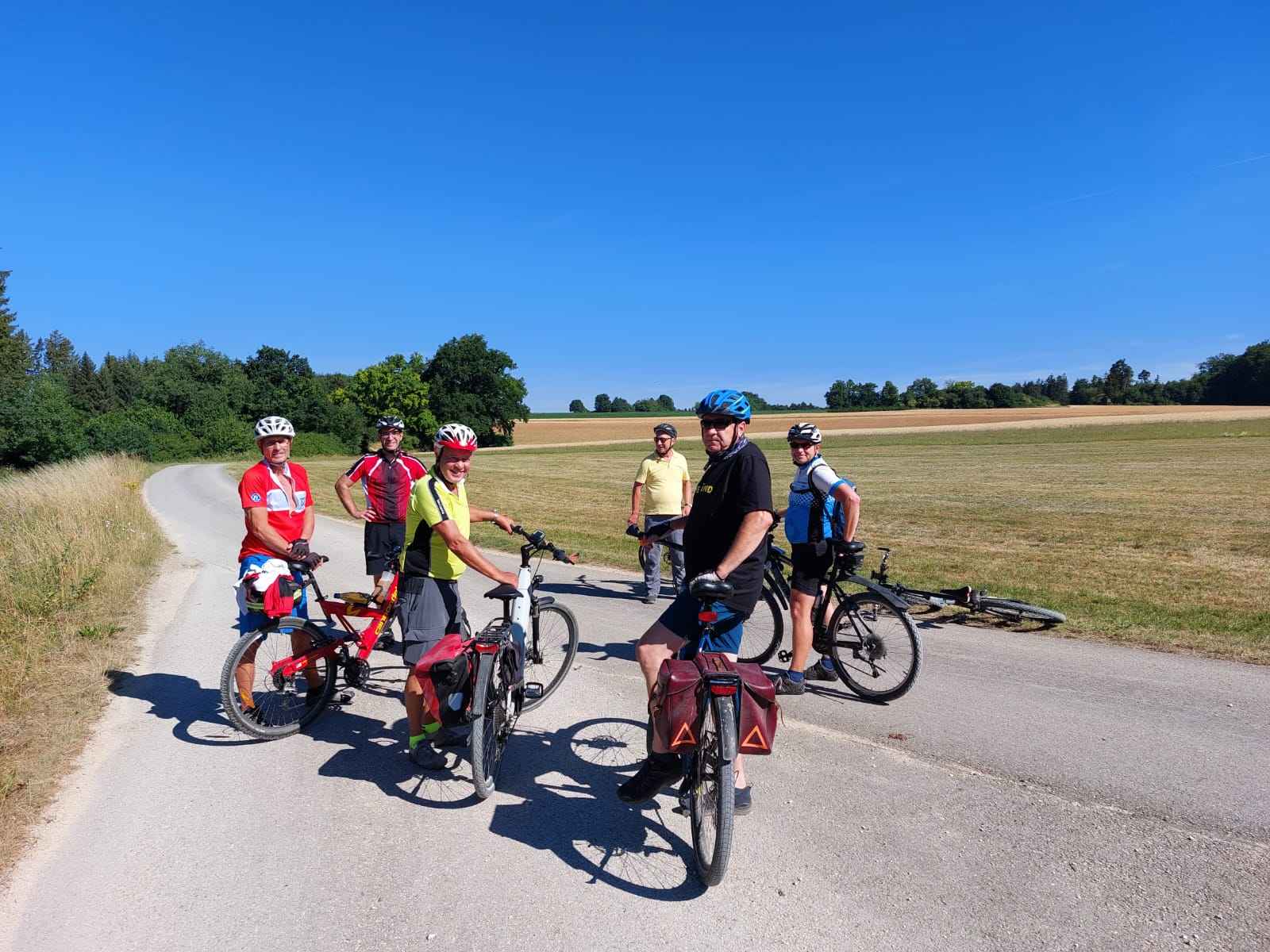 Wie zuletzt auch, trafen wir uns um 8 Uhr am Nettoparkplatz. Es versammelten sich 8 „hochtemperatur-resistente“ Radelnde zur Tour Lautertal-Filstal. Man könnte auch von einer 6 Flüsse Tour sprechen aber dazu später mehr.