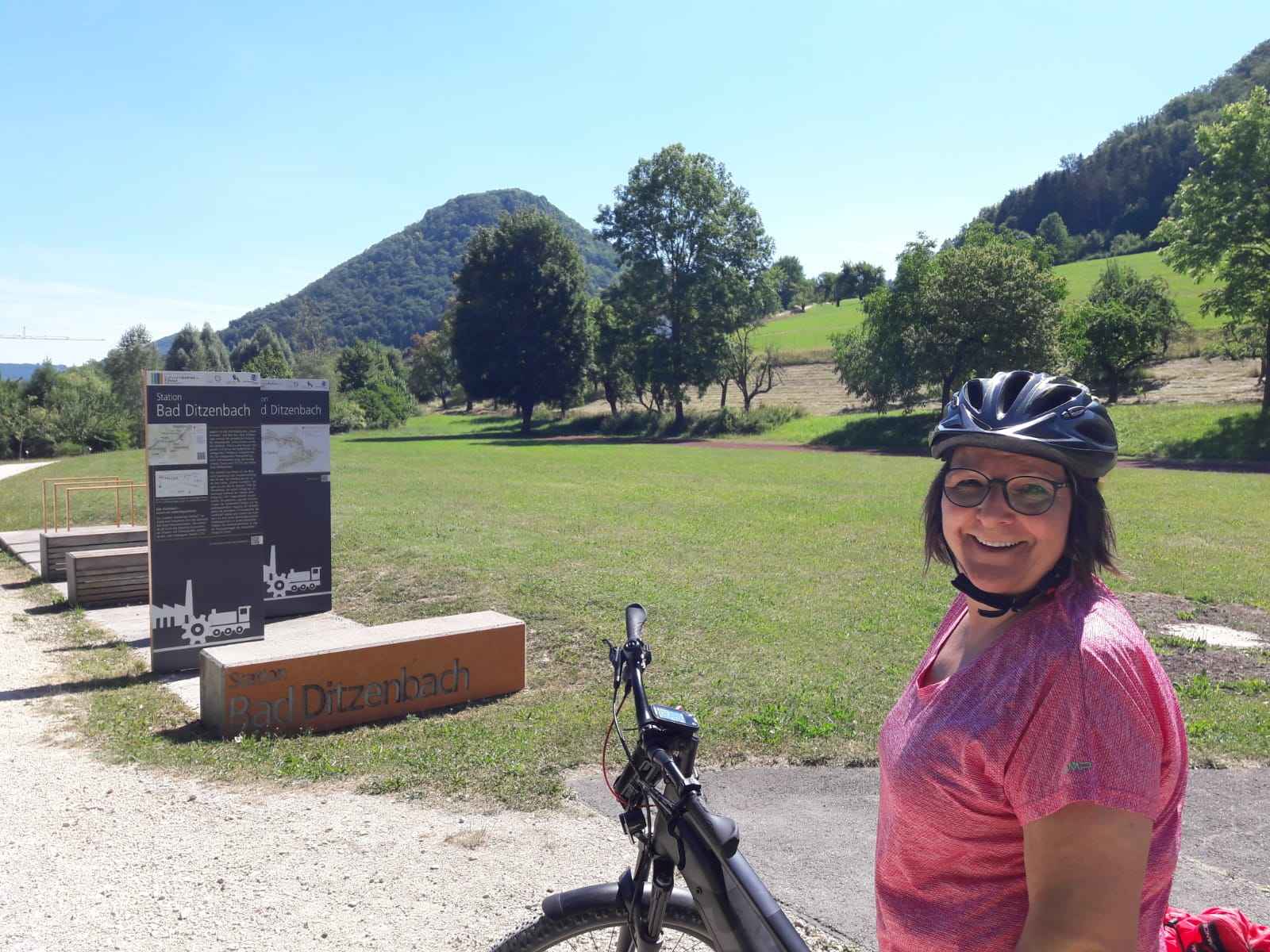 Unten befanden wir uns bereits im Filstal. Entlang des Flusses Nr. 4 unserer Tour erreichten wir zuerst Bad Ditzenbach und danach Bad Überkingen. Dazwischen führte der Weg uns entlang eines Obstbaum-Lehrpfades (vielleicht ja mal eine Reise wert) sowie an bewaldeten Vulkankegeln.