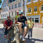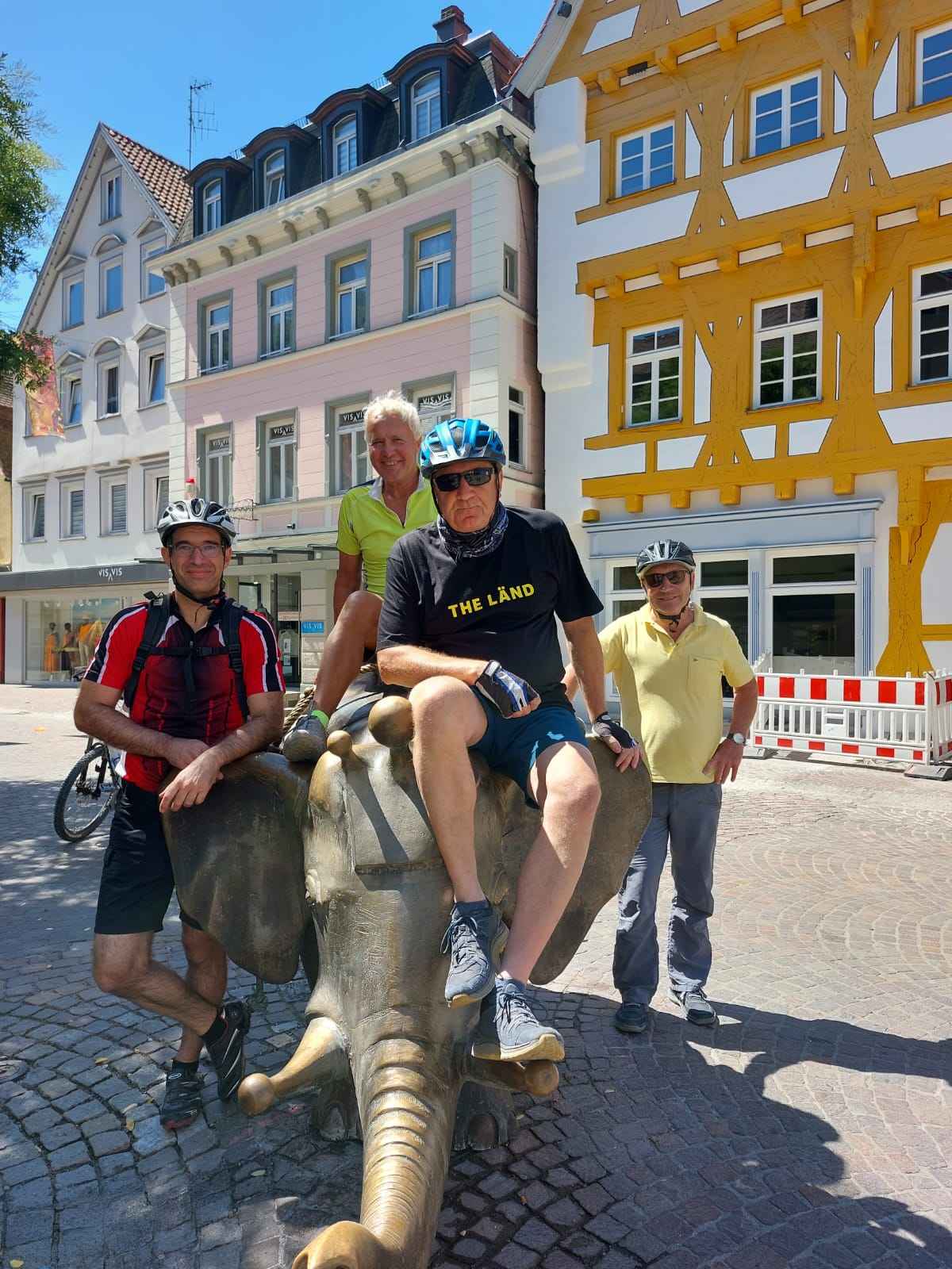 Wir erreichten Geislingen noch vor 12 Uhr. Langsam stieg die Temperatur und natürlich auch der Hunger. Da in der schönen Altstadt in Geislingen kein geöffnetes Lokal zu finden war, fuhren wir weiter an der Rohrach (Fluss Nr. 5) zur Straub-Mühle (im Weiler Schimmel-Mühle). Einige von unseren Mitgliedern werden sich daran noch erinnern – vor einigen Jahren kehrten wir hier mal ein. Nach der wohlverdienten Stärkung ging es direkt mit einem Anstieg von bis zu 15% weiter (Geislinger Steige nach Amstetten)! Im ständigen auf und ab fuhren wir dann von Amstetten weiter nach Urspring zur Lone-Quelle (Fluss Nr. 6) und danach bis nach Jungingen. Nach der Abfahrt durchs Öhrlinger Tal waren die längeren „grünen“ Wegpassagen schon fast vorbei. Auf dem Heimweg kehrten wir noch im Biergarten „Am Kiesbänkle“ am Neu-Ulmer Donauufer ein. Mit aufgefüllten Wasserflaschen ging es an die letzten Kilometer. Nach anstrengenden und mitunter teils sehr heißen Abschnitten, kamen wir gegen 17:30 Uhr zufrieden, stolz aber auch erschöpft nach gut 115 km und ca. 800hm in Einsingen an.