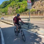 Über den Donauradeweg (Fluss Nr. 1) nach Ulm und anschließend entlang der Blau (Fluss Nr. 2) nach Blaustein ging es ins kleine Lautertal (Fluss Nr. 3). Zwischen Ulm und Blaustein kamen wir außerdem an der Fahrrad-Helix vorbei. Aufgrund der noch anstehenden Strecke, wollte jedoch keiner die zusätzlichen Höhenmeter für eine kurze Abfahrt in Kauf nehmen. Über die zu dieser Uhrzeit kaum frequentierte Landstraße gelangten wir von Herrlingen zur Lauterquelle und legten dort an diesem schönen Ort die erste kurze Trinkpause ein. Ab hier folgten wir einem stetig ansteigendem Schotterweg – zu unserem Glück meist im Schatten – bis nach Merklingen. Nur die letzten Meter waren dann deutlich steiler und somit für die 4 konventionellen Radler die erste „Herausforderung“. Über die Albhochfläche vorbei an der neuen ICE-Haltestelle Merklingen führte der Weg uns in ein malerisches Hochtal Richtung Drackenstein. Kurz vor der Ortschaft begann für uns die längste Abfahrt des heutigen Tages: 250 Höhenmeter verteilt über 6,5 km ging es nur bergab – teilweise sehr rasant bis zu Tempo 60 km/h!