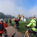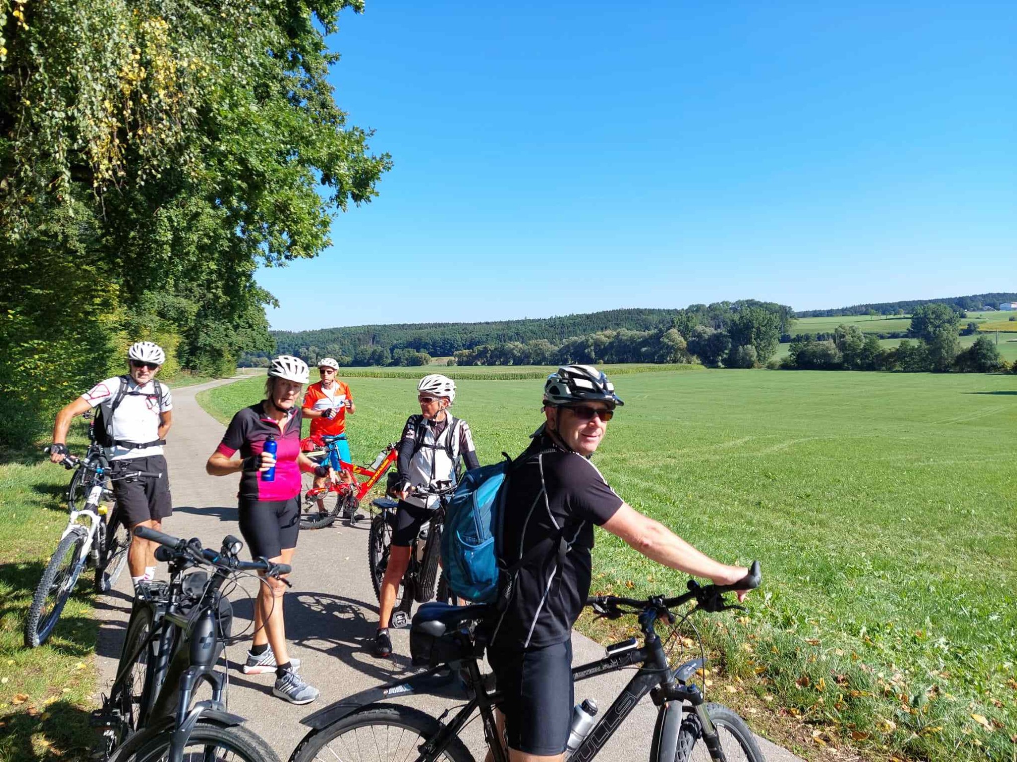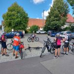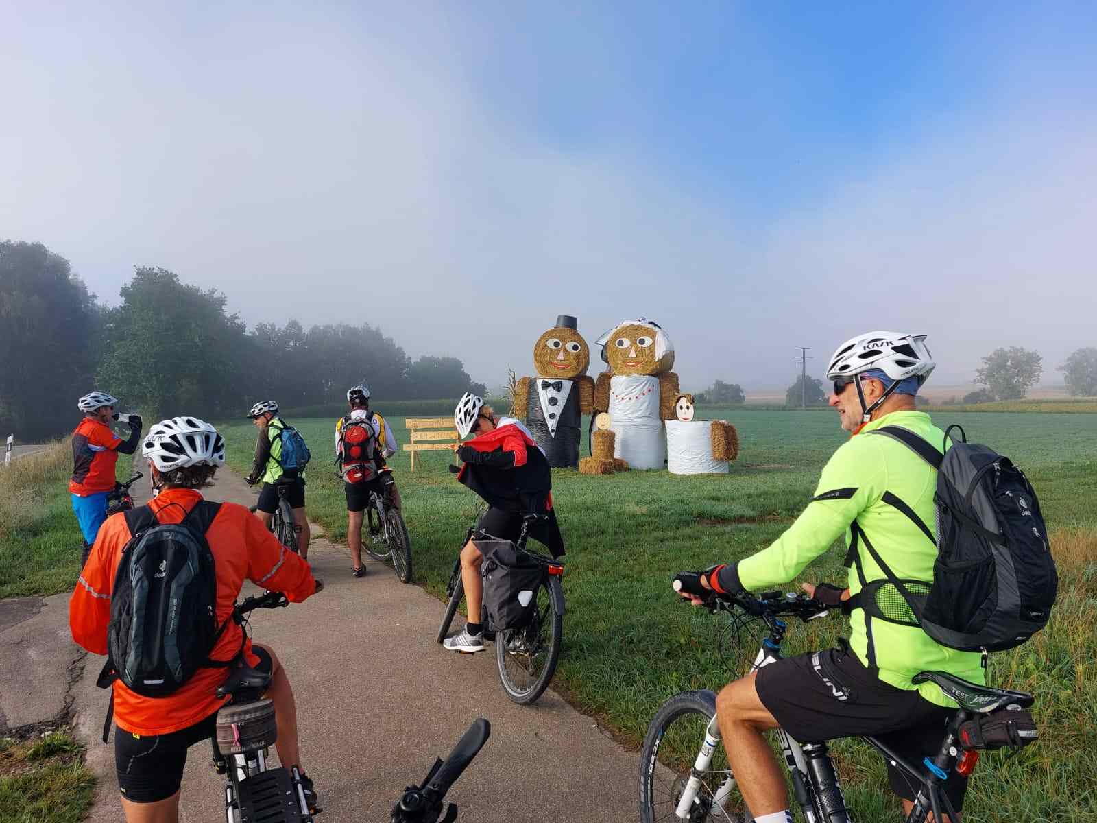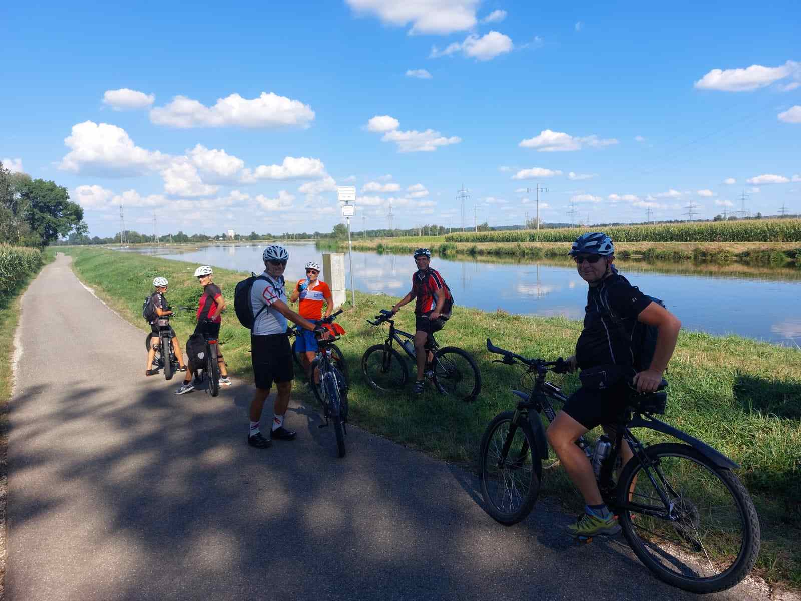 7 Frühaufsteher startete um 8:00 Uhr zur 2-Täler Tour. Über Altheim und Burgrieden ging die Radltour ins weitläufige Rottal. Immer an der Rot entlang bis zum Industriedenkmal im ehemaligem Ölfeld Mönchsrot unterhalb der Klosterkirche St. Verena in Rot an der Rot, die anschließend besichtigt wurde. Am Zusammenfluss von Ellbach und Pfaffenrieder Bach zum Fluss Rot ging es hoch nach Steinhausen zur Wallfahrtskirche Mariä Himmelfahrt und damit auch zur Steinhausener Rottum. In Ochsenhausen wurde im Klostercafe eingekehrt. Gut gestärkt ging es durch das Rottumtal – zeitweise an der Öchslebahn entlang – nach Laupheim. Letzte Einkehr beim Kletterpark Rißtal in Laupheim. Gegen 17:15 Uhr, nach 115 km, endete die Tour in Einsingen.