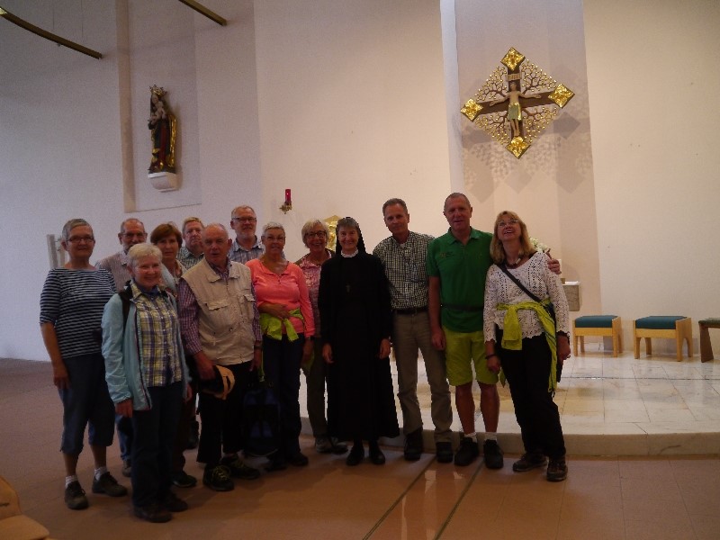 Durch teilweise lichten Wald, vorbei an prächtigen Fingerhut-(Digitalis)-Stauden, erreichten wir bei leichten Regenschauern die Klosteranlagen. Dort berichtete uns Schwester Miriam über die Entstehungsgeschichte der Kirche und des Klosters. Besonders erwähnenswert ist die Umgestaltung der Kirche von einem Längs- in einen Zentralbau im Jahre 1992.