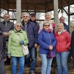 Am Parkplatz Hopfengut haben wir Zirkuswagen gesehen die vom gleichnamigen Hofgut vermietet werden. Der Weg führte uns über Trockenwiesen zum Aussichtspunkt Heutalblick. Wir konnten hier bereits Schusternägel und Küchenschellen sehen. Bei guter Fernsicht sind hier die Alpen zu erkennen – leider war es trübe. Über das Heutal ging es an den Zuggleisen (Strecke Schelklingen – Münsingen der Schwäb. Albbahn) entlang Richtung Münsingen. Nun erfolgte der Aufstieg zu einem Aussichtspavilion mit Aussicht auf Münsingen. Nun war auch mir bewusst 4km = 2Stunden. Ich bin herb ins schwitzen und schnaufen gekommen und am Aussichtspavilion angekommen, konnten wir wieder Kräfte sammeln. Nun ging es über ein in Dreifelderwirtschaft bewirtschaftetes Flurstück zurück zum Parkplatz. Überraschenderweise kamen wir an Obstbäumen mit alten Sorten vorbei, die mit den entsprechenden Obstsorten beschriftet sind. Diese werden wohl im Herbst eine Augenweide sein.