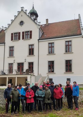 16 Senioren trafen sich am Öchslebahnhof in Reinstetten. Bei anfangs leichtem Regen wanderten wir nach Wenndach hoch. Kurz vor dem Ortsanfang überquerten wir die Straße und kamen in den Arboretum Park rund um Schloss Sommershausen da konnten wir die schönen und seltene Bäume, Sträucher, Büsche und Teiche bestaunen. Das neu renovierte Schloss Sommershausen ist natürlich ein Hingucker, es gehörte bis in die 60er Jahre dem Baron Koenig von und zu Warthausen. Heute gehört der Park dem Land Baden-Württemberg und wird vom Rotary Club Biberach und den Naturfreunden Wennedach sehr naturbelassen gepflegt.