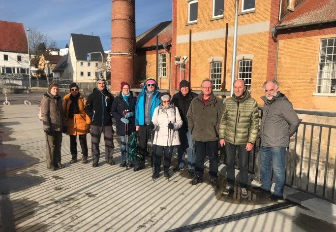 Bei bestem Wanderwetter sind wir mit 11 Personen losgefahren zum Parkplatz am Bahnhof Rottenacker. Die erste Station war das Kraftwerk Rottenacker. Das Kraftwerk war früher im Einsatz für die Weberei, die 300 Personen beschäftigte und zuletzt zur Stromerzeugung im Einsatz.