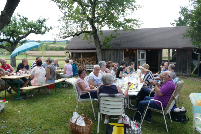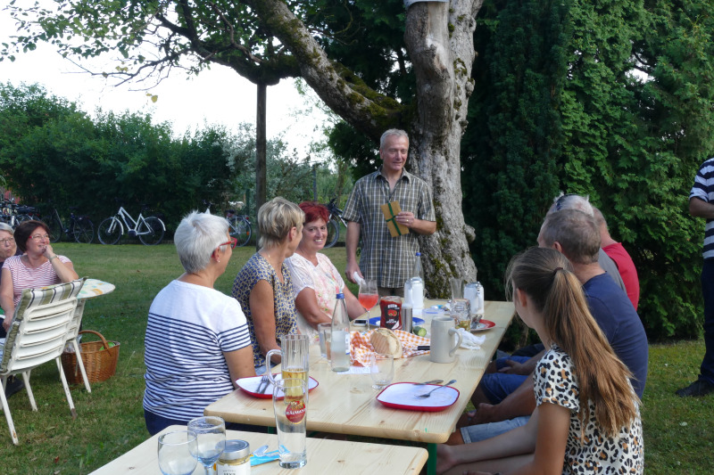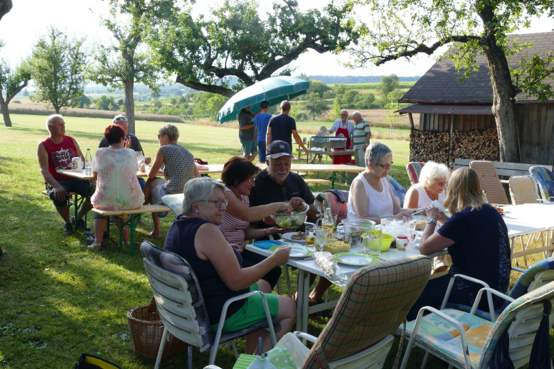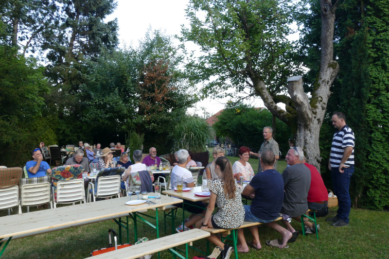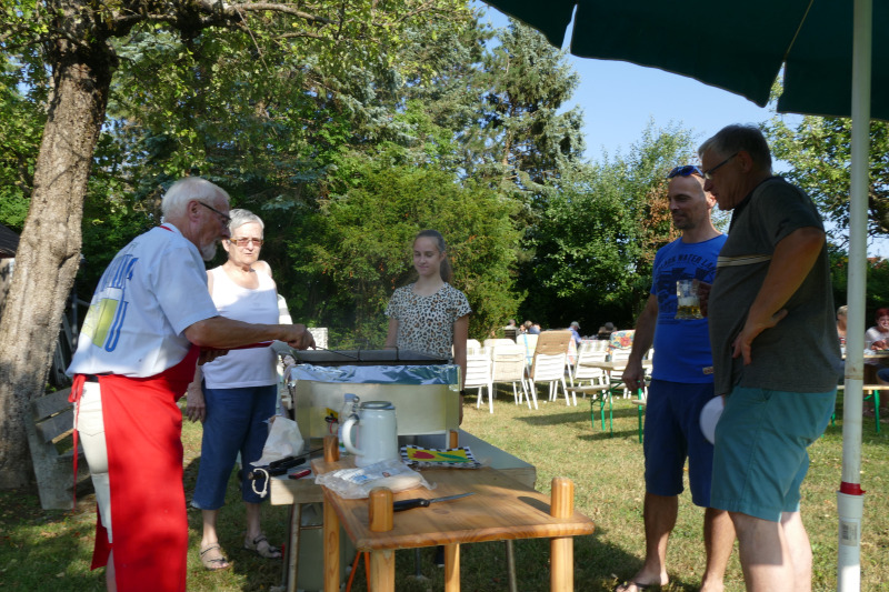 Am 27.07.2019 war es wieder soweit und mehr als 50 Mitglieder der Ortsgruppe versammelten sich beim traditionellen Sommerfest in Maiers Garten. Aufgrund des heftigen Gewitters mit Starkregen und Hagel vom frühen Nachmittag trudelten die Gäste erst nach und nach ein und hielten den Grillmeister Rudolf Maunz bis weit nach 20 Uhr auf Trab.