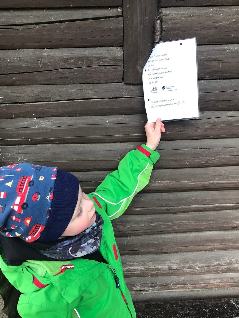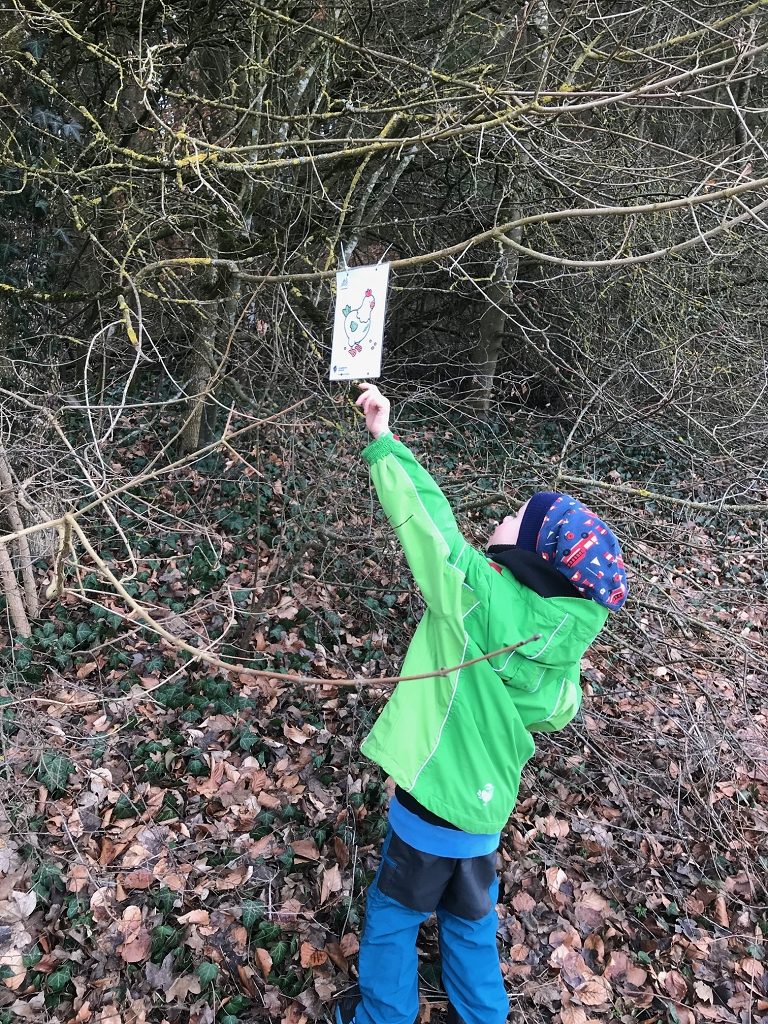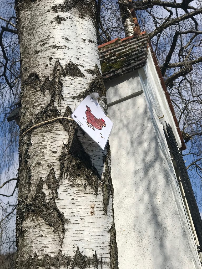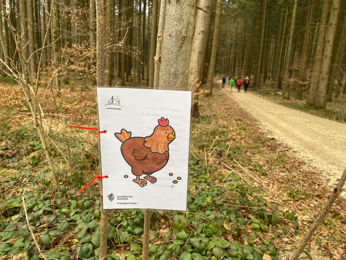Die 1. Schnitzeljagd „Henne“ (07.03. – 13.03.2021) startete am Wanderparkplatz in Ermingen/Turitellenplatte und führte durch den Erminger Spitalwald hindurch. Die Hühner hatten den Spieß einfach mal umgedreht, und sich vor dem Fuchs im Wald versteckt.