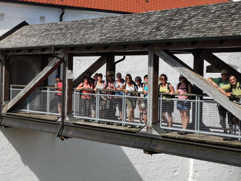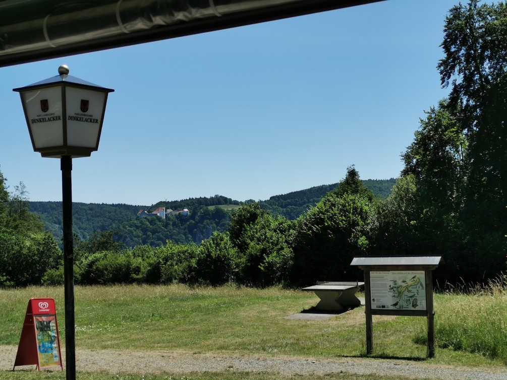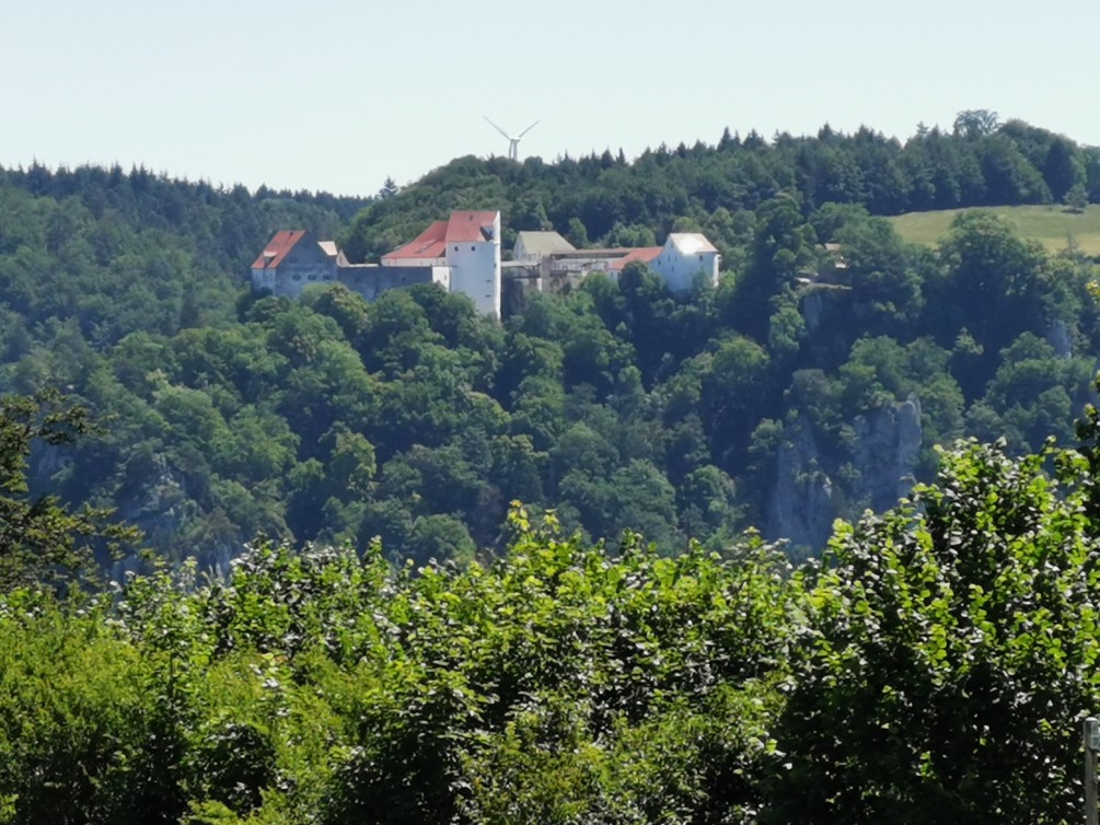 Mit vollem Magen ging es dann in glühender Mittagshitze bis zum Waldrand und dann bergab im Schatten bis zur Donau. Dar Aufstieg zur Burg Wildenstein war dann schweißtreibend. Obwohl im Schatten. Oben angekommen suchten alle Abkühlung im Inneren der Burgschänke. Im Burghof selbst war es viel zu heiß. Und schon wieder das Wort Schatten. Kann aber nicht oft genug erwähnt werden, denn der Abstieg ging wieder durch den Wald.