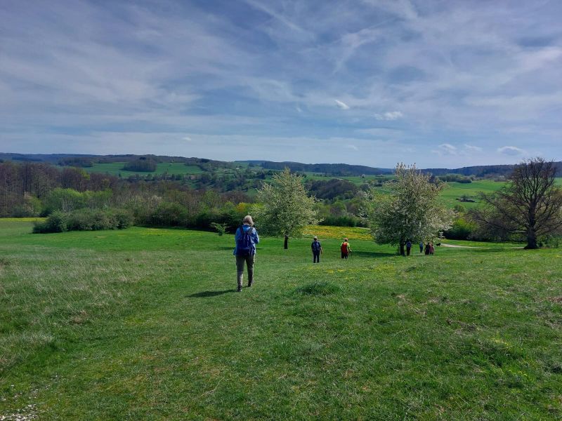 Über weitflächige Heidelandschaft führte uns der Weg entlang des Albtraufes über den Aussichtspunkt Auchtert zum Randecker Maar (ehemaliger Vulkanschlot mit einem Durchmesser von 1,2km). Wenn es hier die Schafbeweidung nicht gäbe wäre hier Wald.