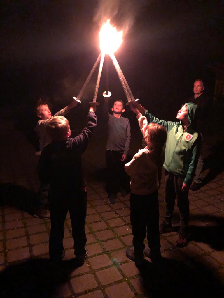 Um ca. 18.30 Uhr war die Familiengruppe mit sechs Familien nahezu vollständig in Weidach versammelt. 15 Kinder und Erwachsene freuten sich auf die Übernachtung und bezogen ihre Zimmer. Der gemeinsame Abend startete mit leckerem Pizzaessen auf der Terrasse. Highlights des Abends waren die späte Nachtwanderung mit Fackeln und Taschenlampen und das gemeinsame Spielen des Lieblingshüttenspiels unserer Kinder „Werwolf“ bis spät in die Nacht hinein.