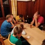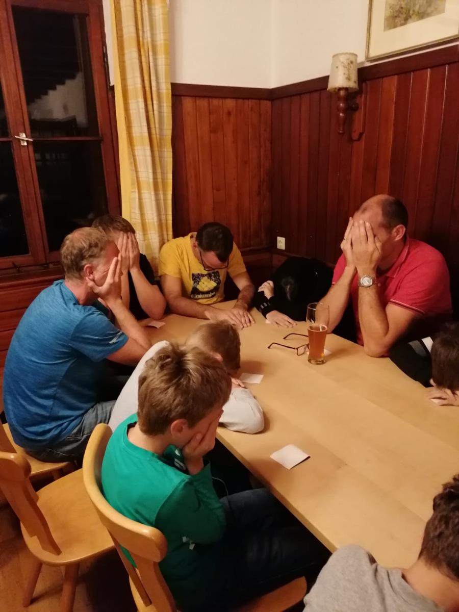 Im Anschluss an die Samstagsbewirtung übernachteten einige Familien (6 Erwachsene und 6 Kinder) in Weidach. Aufgrund des Wetters gab es statt Grillwurst am Lagerfeuer Pizza vom Pizza-Express. Schöne Highlights des Abends waren die Nachtwanderung gegen 22 Uhr und das ausdauernde Spiel „Werwolf“ bis spät in die Nacht hinein.